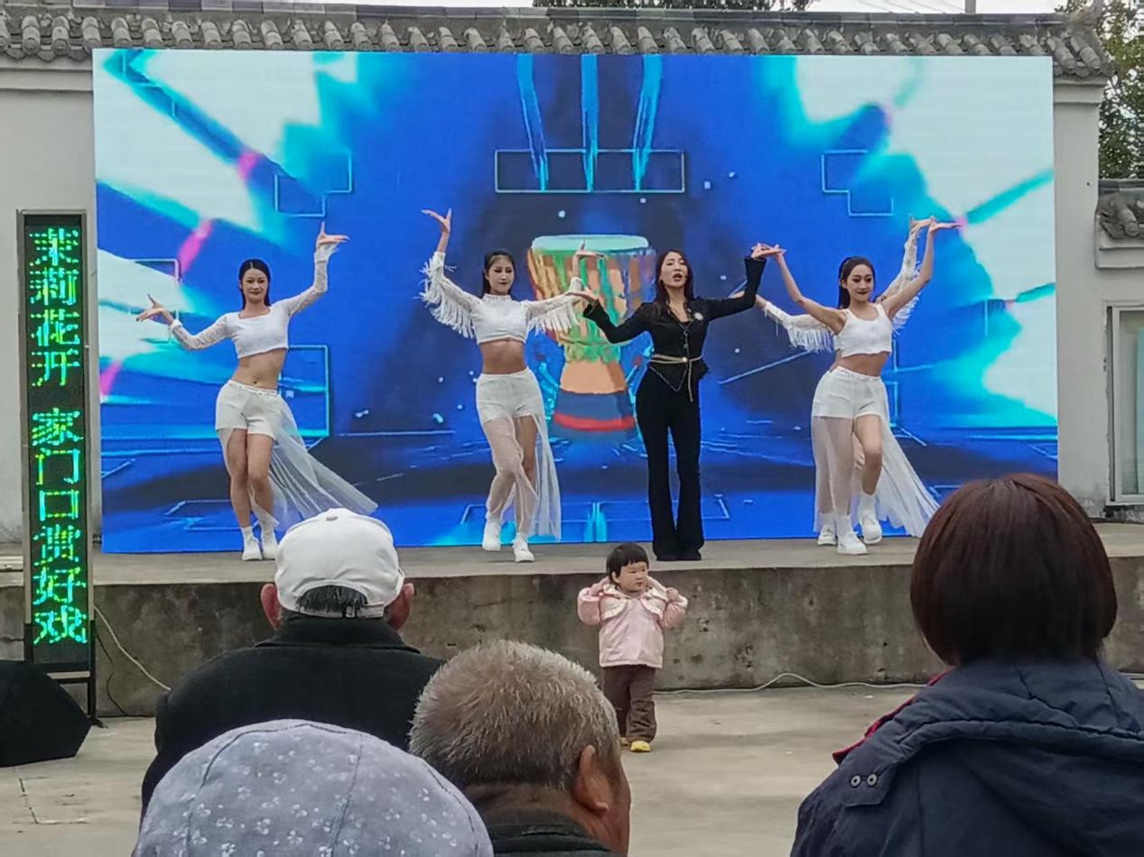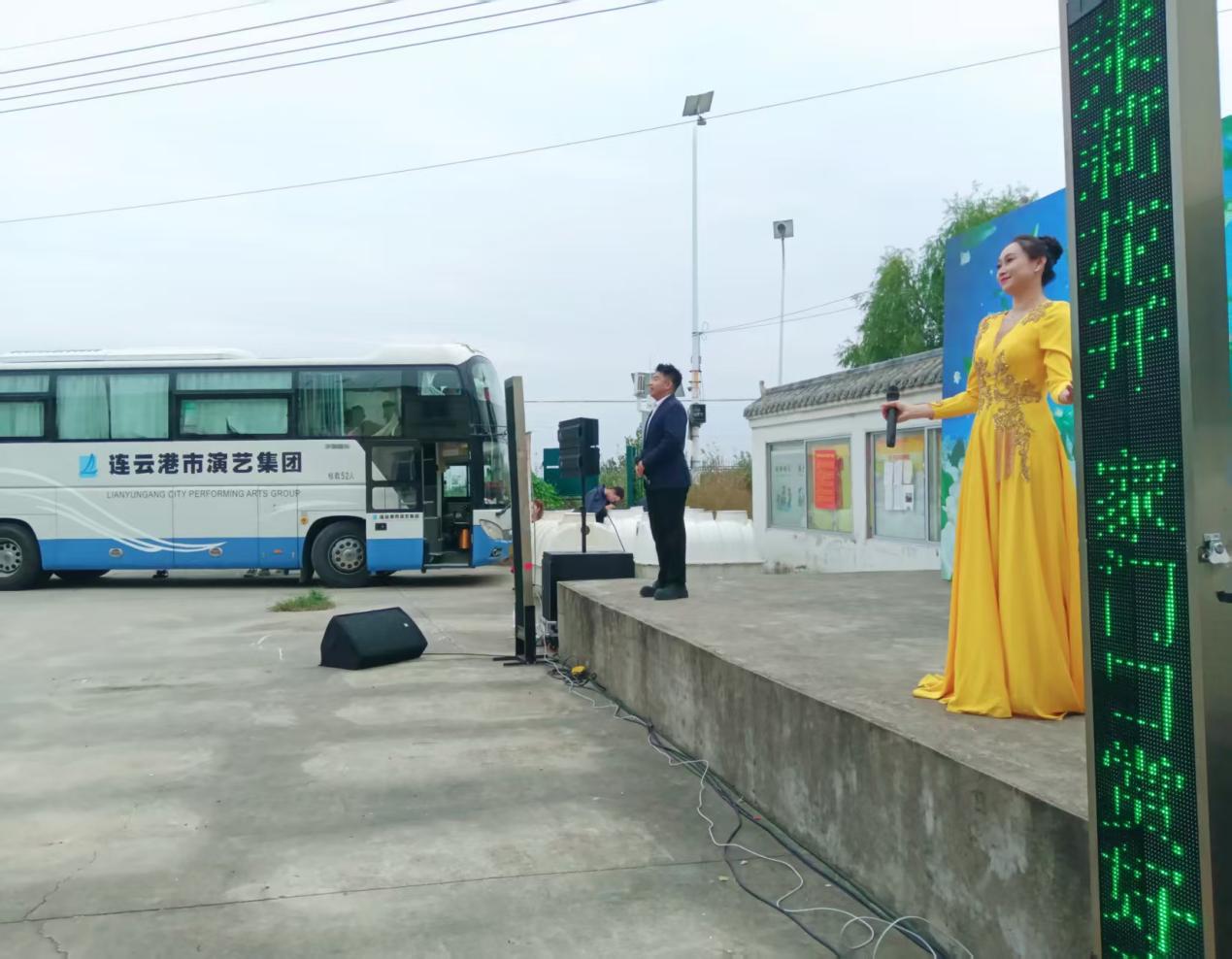 中国江苏网10月21日连云港讯 10月20日下午,气温陡降,寒气渐浓,在东海县双店镇孔白村文化广场却是热情似火,歌声飞扬,由江苏省文化和旅游厅主办,江苏省文化馆承办,连云港市文化广电和旅游局、东海县文体广电和旅游局、双店镇人民政府协办的“茉莉花开 家门口赏好戏”江苏省优秀舞台艺术作品和优秀群众文艺作品乡镇巡演活动在这里激情上演。来自连云港市歌舞剧院有限公司的演员和艺术家们为村民奉上了一场异彩纷呈的“文化艺术盛宴”,也为乡村文化振兴注入了新活力。