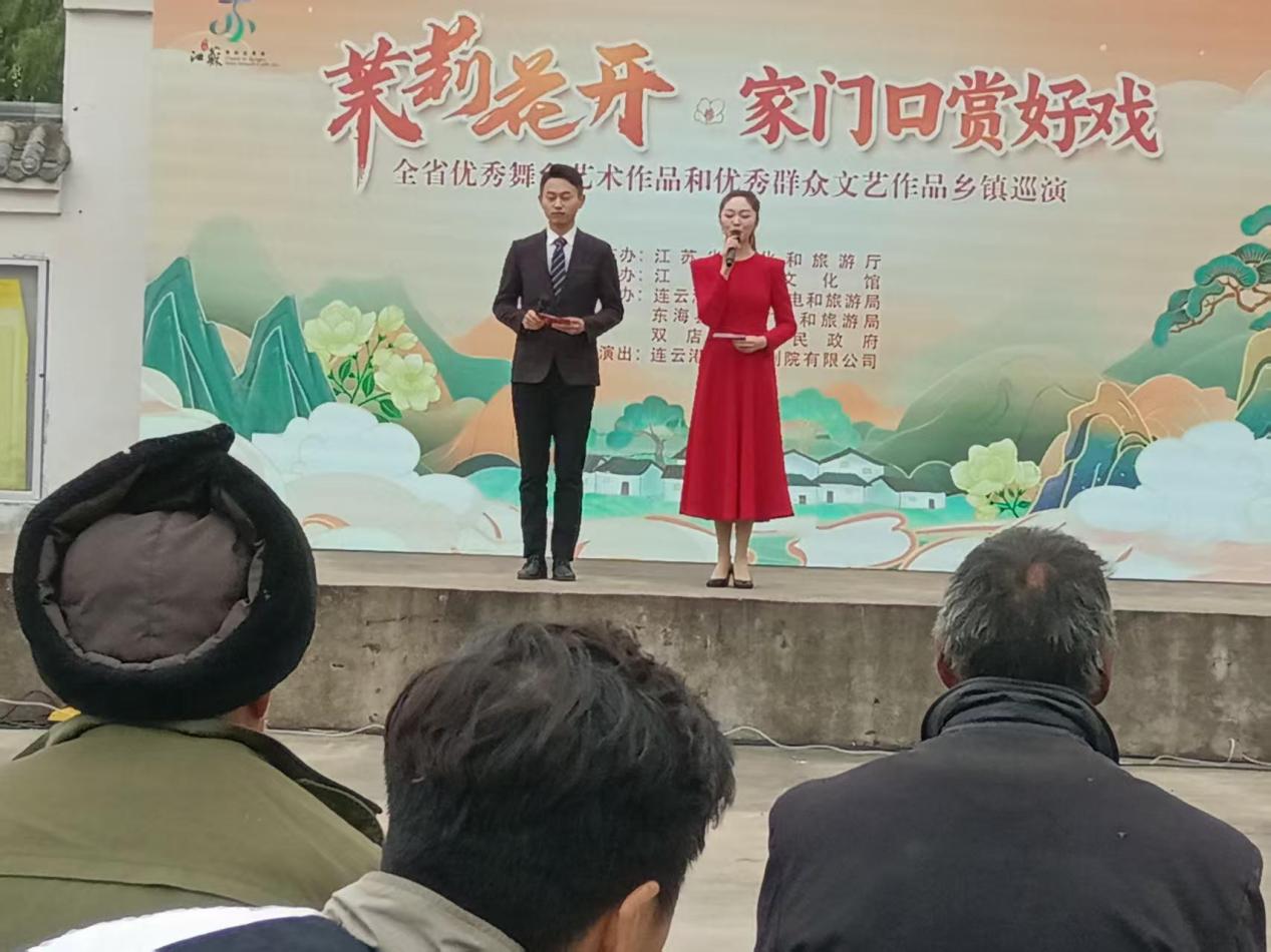 据悉,“茉莉花开 家门口赏好戏”——全省优秀舞台艺术作品和优秀群众文艺作品巡演是江苏省文化和旅游厅深入贯彻党的二十届三中全会精神,推动优质文化资源直达基层的重要举措,综合展现了江苏多元化的地方文化特色,集中展示了近年来江苏文艺创作的新成果。连云港市歌舞剧院有限公司作为茉莉花开文艺直通车的一个重要的演出团队,真情演绎,送戏下乡,把人民群众喜闻乐见的歌舞、戏曲、音乐、相声等极具地方特色的舞台艺术精品奉献给父老乡亲,家门口品尝文化大餐,赢得大家广泛赞誉。