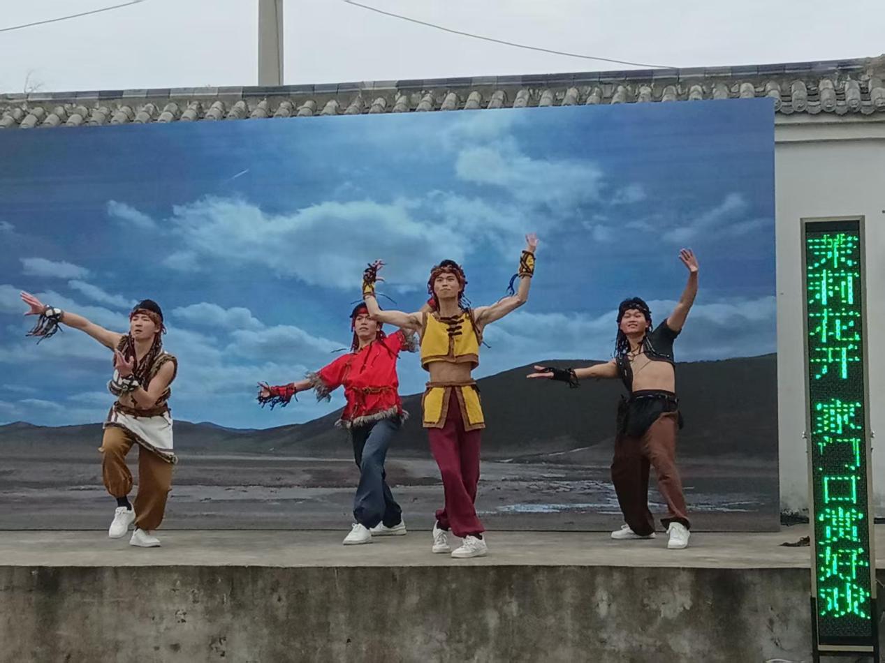 广袤无垠的草原、清澈见底的河流、绵延不绝的山脉、洁白无瑕的云朵,还有漫山遍野的牛羊……演出中,荣获连云港市第三届音乐舞蹈节一等奖的男子四人舞《北方歌谣》以其粗犷豪放、细腻灵动的精湛演技,把观众一下子带进了茫茫无际的大草原,仿佛置身于一个色彩斑斓的童话世界,一切都是那么的美好,那么的令让人心醉、心驰神往,将演出气氛推向高潮,赢得阵阵喝彩。