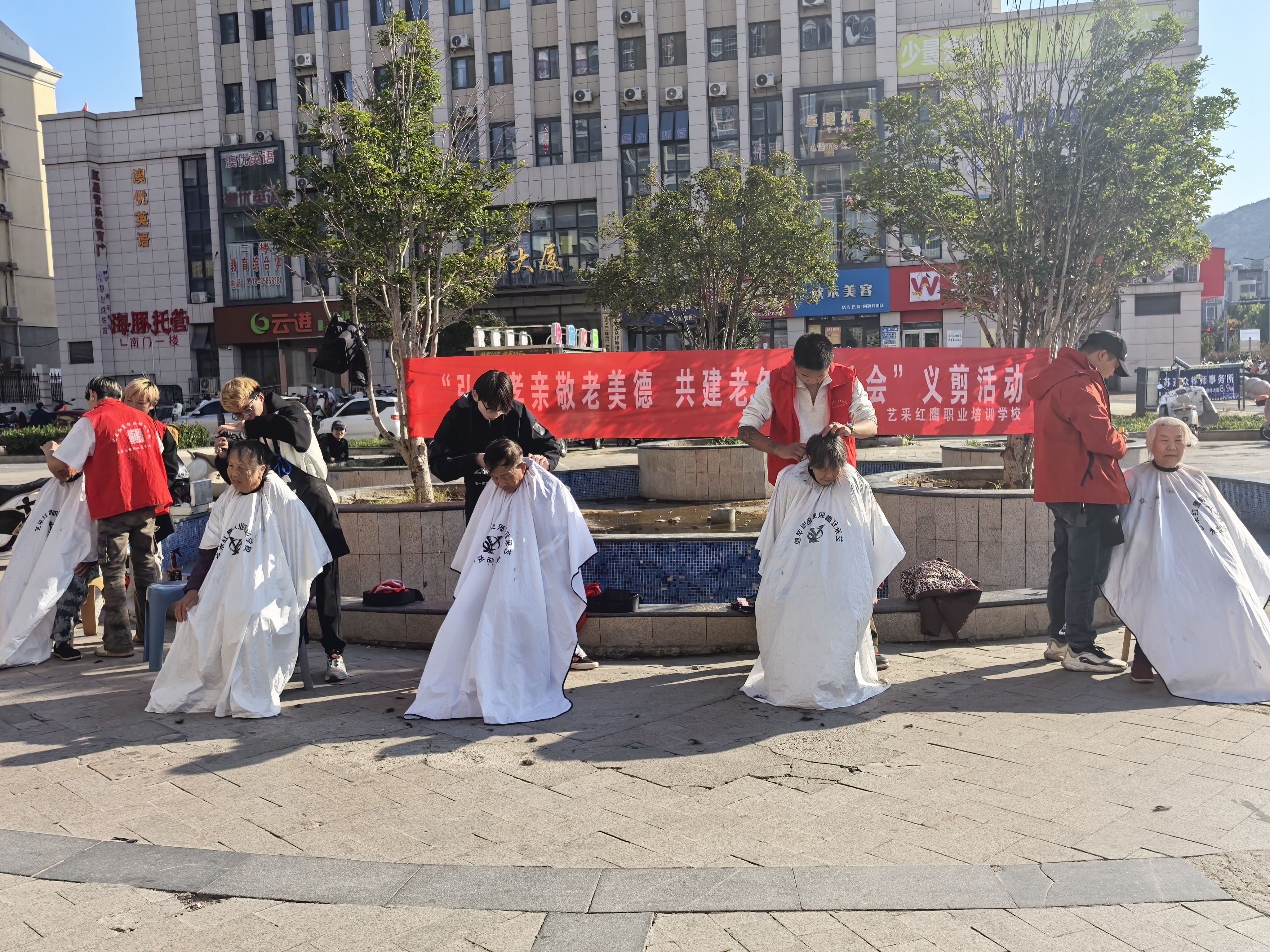 下午两点半,小区广场暖意融融。写有活动主题的横幅格外醒目,用板凳围起的临时理发区内坐满了有序等候的老人,现场谈笑风生,气氛温馨。“咔嚓”的剪刀声奏响了爱心乐章。来自“艺采红鹰”志愿服务队的青年理发师们自带工具,“零报酬”投入服务。他们技艺娴熟,耐心询问老人偏好,细致修剪,贴心的话语让老人们倍感亲切。理发现场也成了邻里愉快的交流场所。
