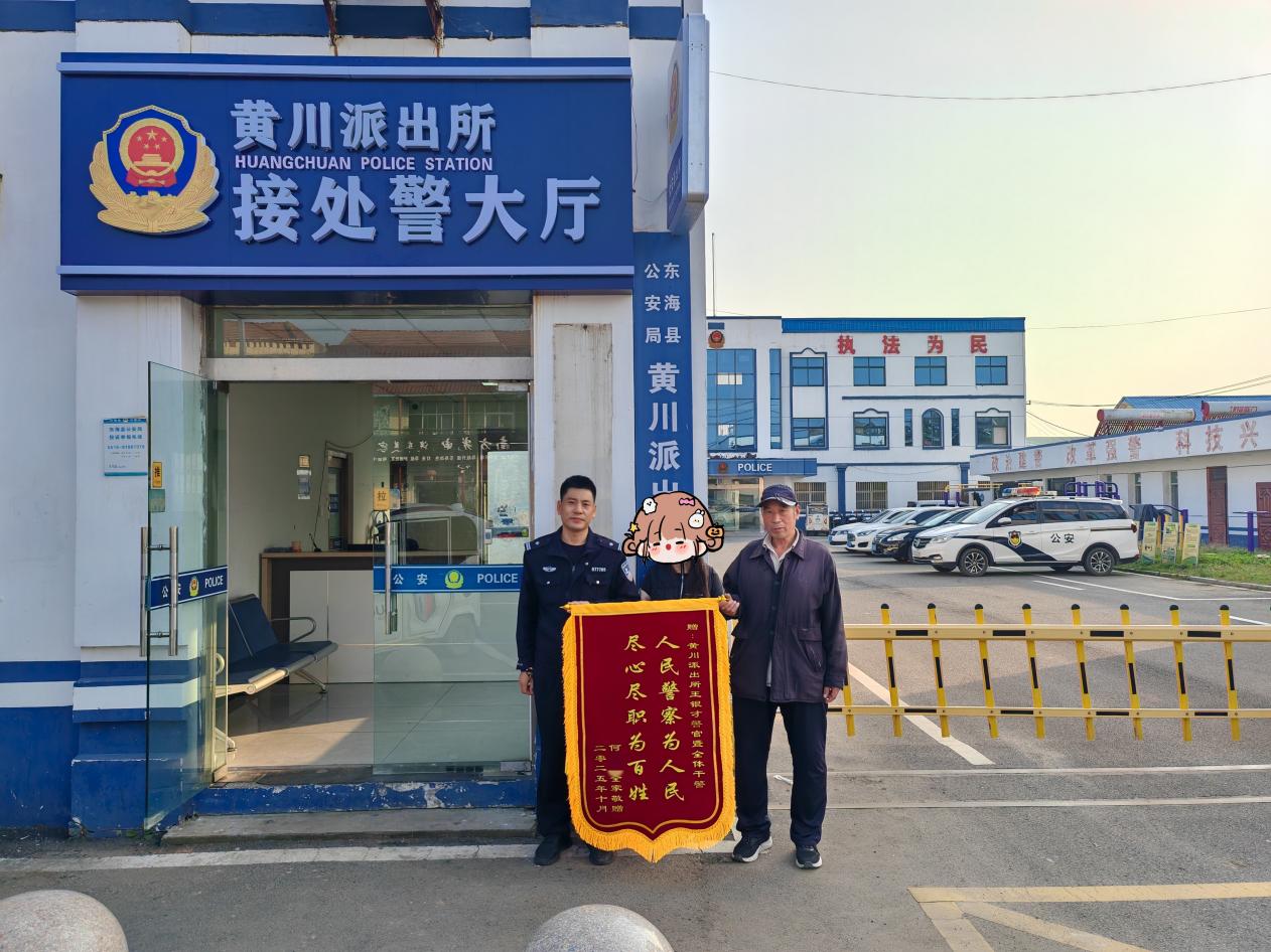 在严厉打击犯罪的同时,东海公安的温情守护从未停歇。10月23日晚,黄川派出所接到群众报警,称在310国道发现一名迷路女孩。民警迅速赶到现场,耐心安抚女孩情绪并了解情况,最终成功联系上其爷爷何先生。看到孙女安然无恙,何爷爷激动不已。为表达谢意,他于10月28日将一面印有“人民警察为人民 尽心尽职为百姓”的锦旗送到派出所。