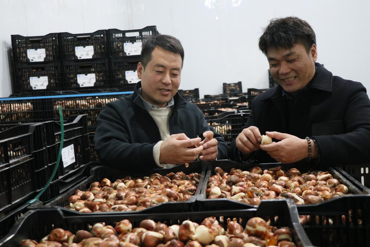 中国江苏网10月31日连云港讯 时下,走进中国鲜切花第一镇、全国三大百合重点产区之一的东海县双店镇,连片的温室大棚在阳光下熠熠生辉,花香四溢。花农李兵舰看着今年即将采摘上市的头茬香水百合,脸上洋溢着笑容:“瞧瞧这百合长势喜人,花苞又多又大,早已是名花有主,提前被外地客商订购,这多亏了鲜切花产业功能型党委为咱花农想得周到,请来了农业专家手把手教会了我们控温控湿技术。”