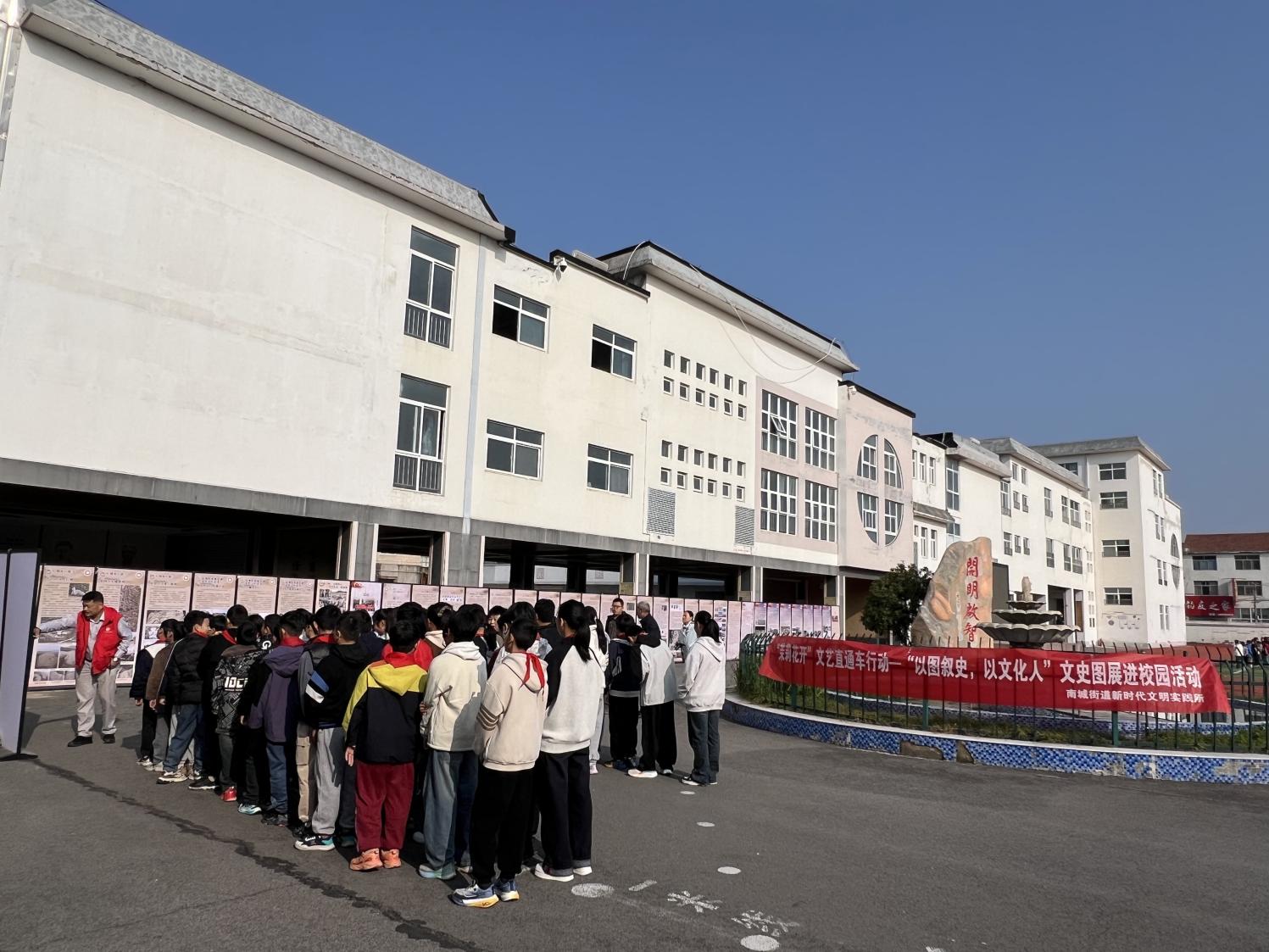 “连云港市第四次全国文物普查重要新发现图片展”“连云港市‘十四五’考古新发现成果展”以及“永恒的丰碑-连云港抗战文物特展”——三大主题展览百余幅图片,用视觉语言串联起地方文明脉络。活动现场,学生们在老师的组织下有序观展,他们或凝神细览图文内容,或积极提问交流,表现出对历史文化的浓厚兴趣。当同学们在展板中看到熟悉的“南城东大街76号民居”时,倍感亲切,图片里这座日常可见的古建筑的砖瓦纹样,仿佛在无声地讲述着往昔的生活图景和社会风貌。