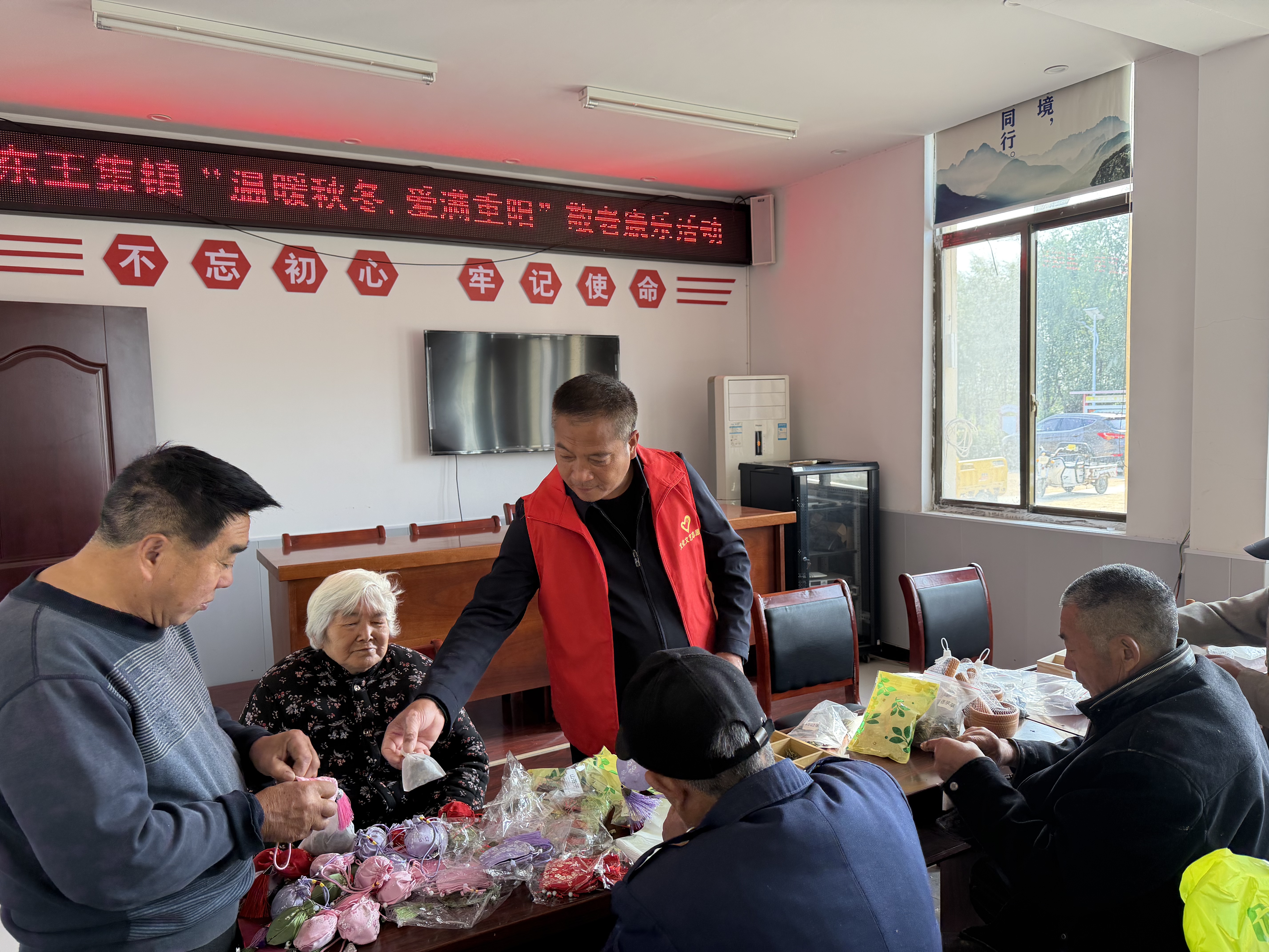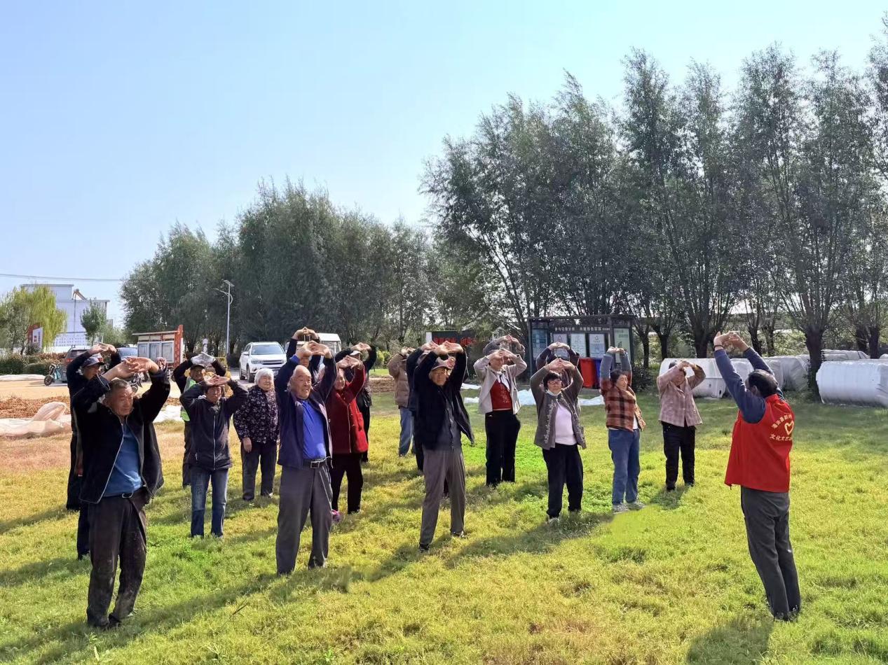 活动现场,老人们亲手制作寓意驱邪避瘟的茱萸香囊,这一古老习俗在指尖得以生动传承;在八段锦集体练习环节,老人们神情专注,努力将每一个动作做到标准到位,以实际行动诠释了重阳节蕴含的健康养生理念。活动尾声,志愿者们为老人们奉上菊花茶与重阳糕,大家品茶尝糕、闲话家常,在温馨氛围中共同体验了登高佩茱萸、品糕赏菊的传统意趣。