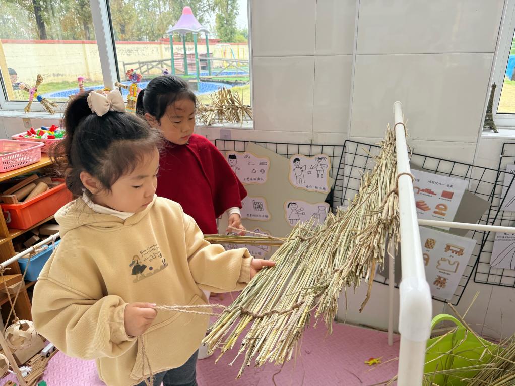 本次活动以“环境改造”为切入点,将山海文化中极具代表性的“草莓”与“草编”元素融入园所环境设计与课程实践。教师们巧妙利用稻草、柳条、玉米皮、树枝等田间地头的自然材料,与幼儿共同打造充满乡土气息的互动空间:从“草莓田”角色扮演区到“草编工坊”创意角,从玉米皮拼贴画到稻草编织的稻草人,孩子们在动手实践中感受着自然材料的温度与可能性。园内一角一落皆成景,一草一木皆含情,充分展现了农村幼儿园“以土为美、以朴为韵”的教育理念。
