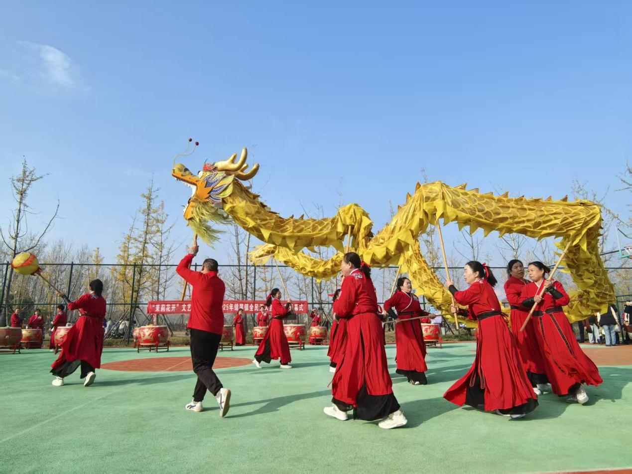 中国江苏网11月17日连云港讯 11月15日上午9点整,锦屏镇刘志洲山体育公园内锣鼓喧天、人声鼎沸,“茉莉花开”文艺直通车——2025年锦屏镇全民五人篮球比赛在热烈氛围中隆重开幕。来自全镇的十支参赛队伍整齐列队,在冬日暖阳下展现出锦屏人民昂扬向上的精神风貌。极具地方特色的“茉莉花开”文艺直通车主题表演,融合传统舞蹈与现代元素,为赛事增添了浓厚的文化气息,现场观众掌声雷动,欢呼声此起彼伏,整个体育公园沉浸在一片欢乐的海洋中。这场全民参与的体育盛会,充分展现了锦屏镇以篮球运动为纽带、凝聚村社力量、促进全民健身的蓬勃生机。