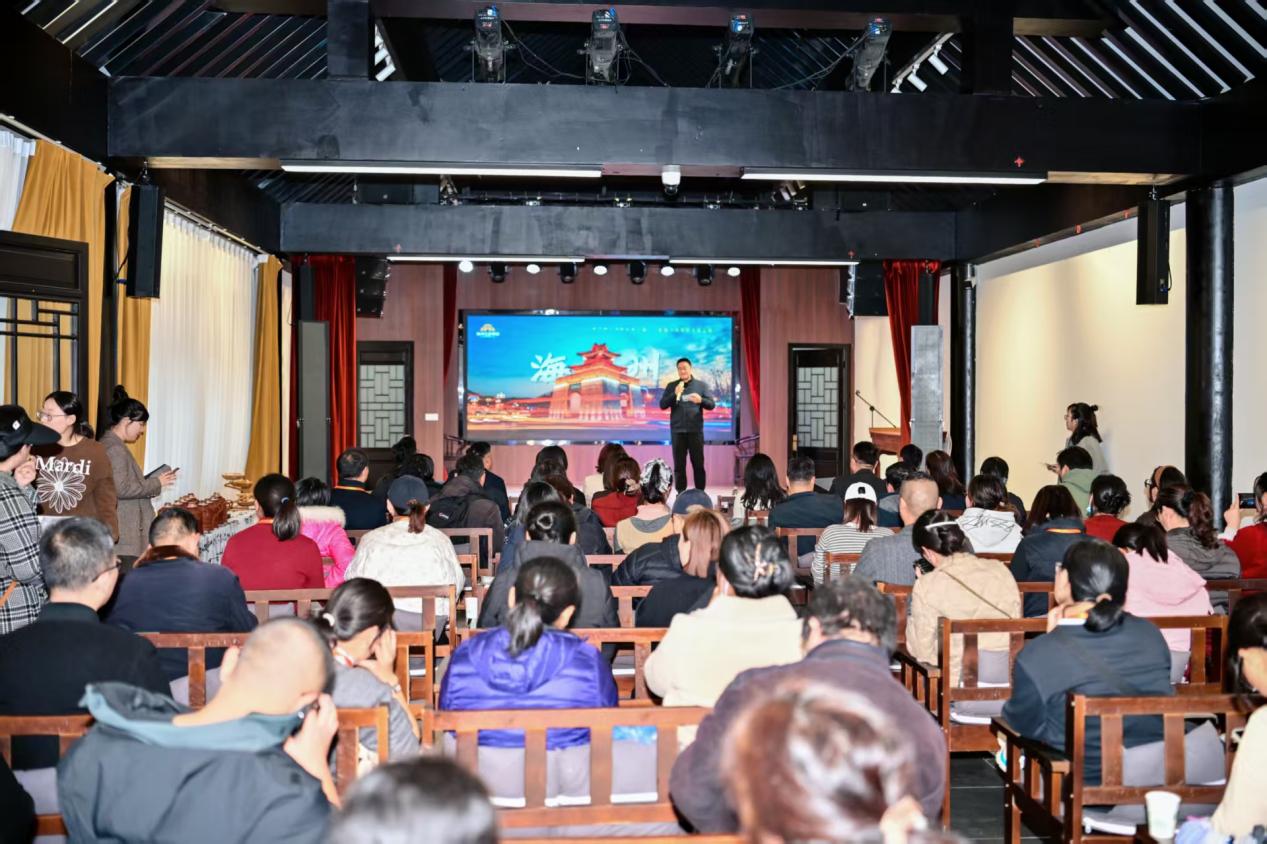 当天下午,“金牌大讲堂·讲好港城故事——走进海州古城”活动在双龙井文博园举行。江苏海州文旅集团董事长陈东作专题推介,重点介绍了孔望山、桃花涧、双龙井等景区新产品及夜爬孔望、《天书奇境》VR体验、《镜花绮梦》沉浸式光影实景剧等新业态。多家旅行社代表表示将积极推广海州旅游新产品,组织更多游客走进古城、感受文化、体验海州。