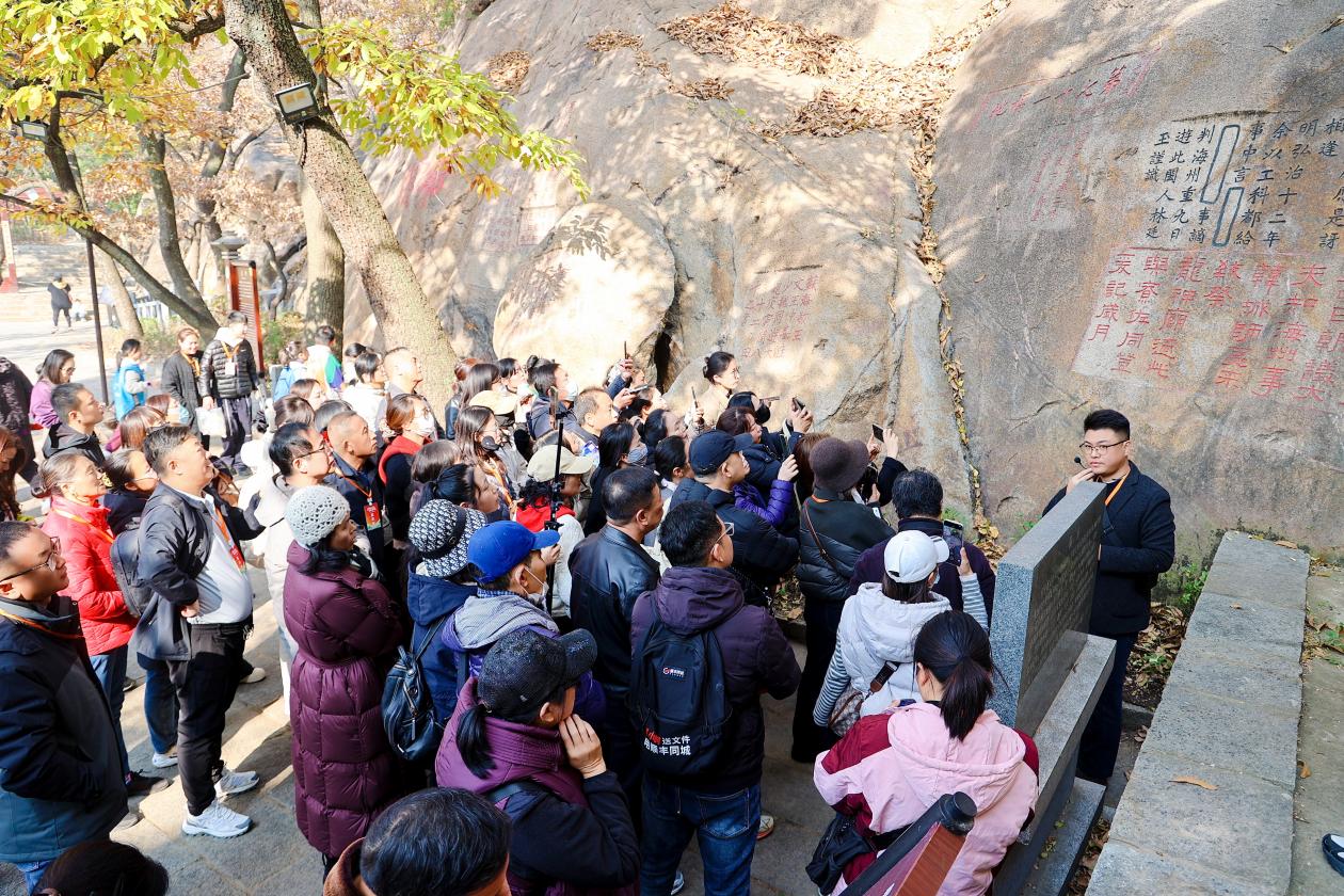 集结在海州体育馆的首发团游客有序前往孔望山、桃花涧、双龙井等景区游览,沉浸式体验港城的自然景致与人文风情。参与活动的王先生兴奋地说,“这次推出的路线文化探寻和游乐体验并重,特别符合我们的需求,也让我们更加了解海州旅游的新产品,真是太好了,我们下次还来!”同行的李女士也感慨道,“以前总觉得家乡的风景习以为常,没想到今天一路走来,看到了这么多翻天覆地的变化——VR体验让千年古迹活了起来,沉浸式演艺让人恍入仙境,就连景区的配套服务都这么贴心周到,这趟旅程既饱了眼福,更涨了自豪,必须把家乡的美分享给更多亲友!”
