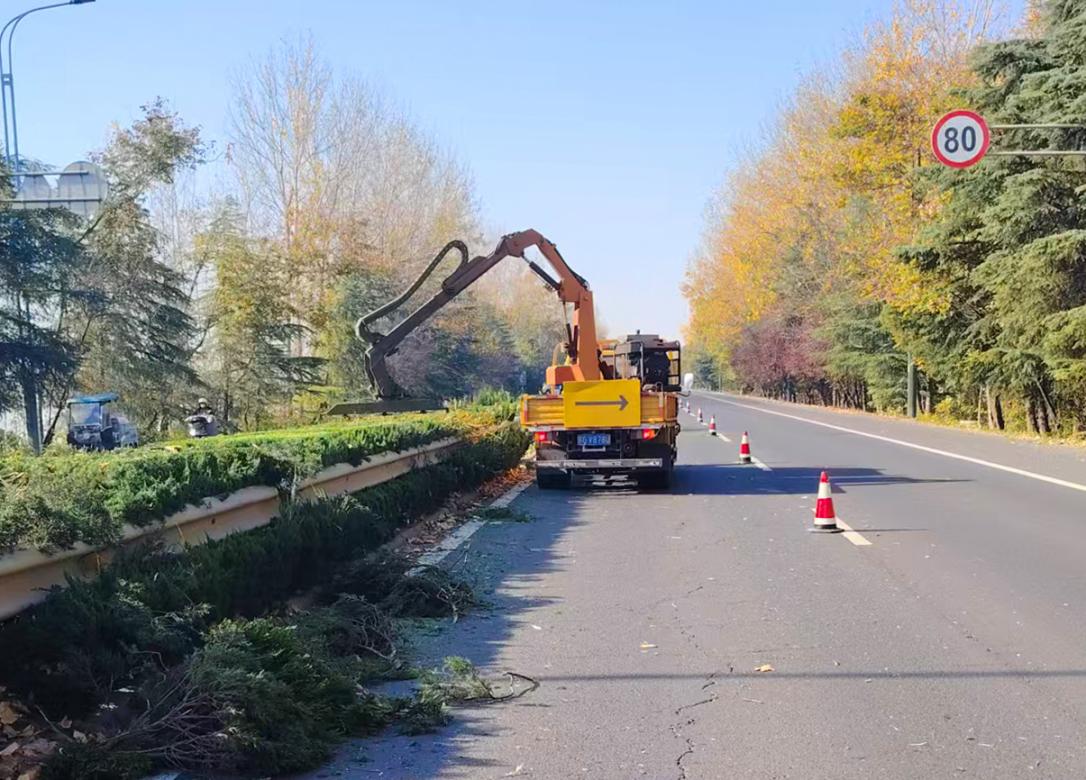 绿篱机“来助力”,修剪树木消除安全隐患。养护人员借助绿篱机作业车臂,精准定位绿化修剪高度,对中分带绿化进行统一修剪,同时及时清运修剪断枝和垃圾,营造畅安舒美净的通行环境,为绿化安全越冬保驾护航。