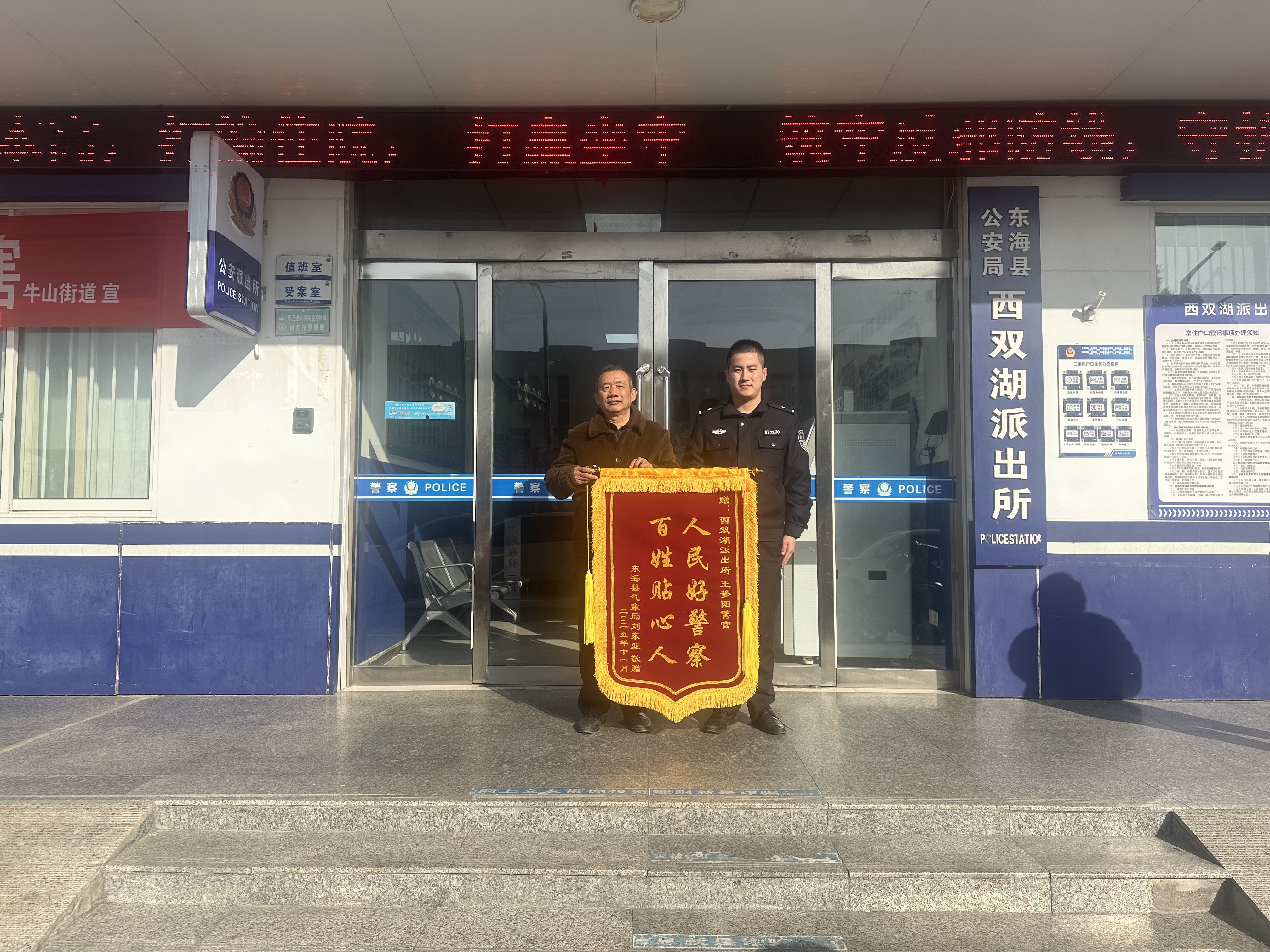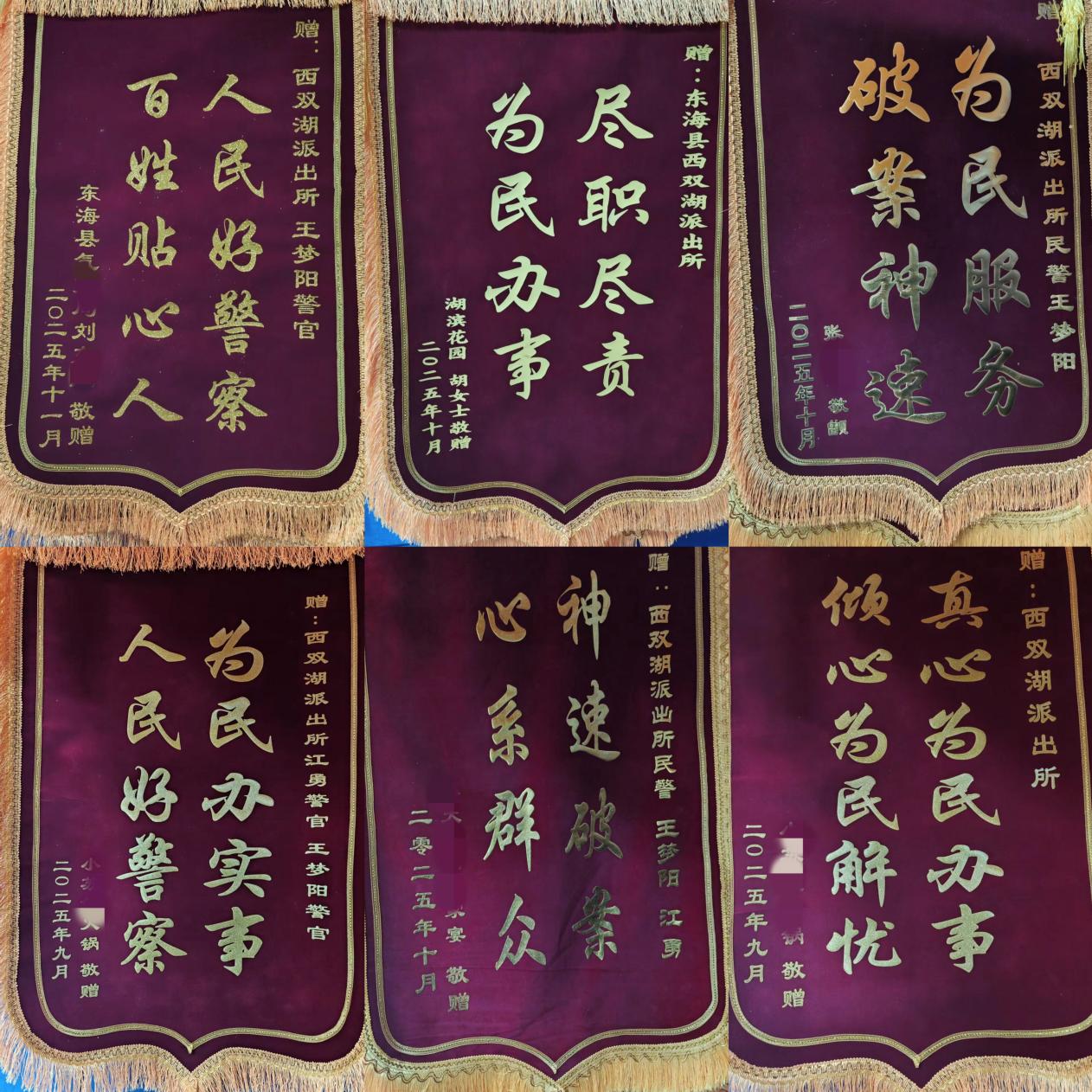中国江苏网11月28日连云港讯 “王警官,太感谢你了!要不是你,我手机里的重要信息就全丢了。”11月26日,市民刘先生专程来到东海县公安局西双湖派出所,将一面写有“人民好警察 百姓贴心人”的锦旗送到民警王梦阳手中。这是这位“00后”新警自今年7月入职以来,收到的第6面致谢锦旗。