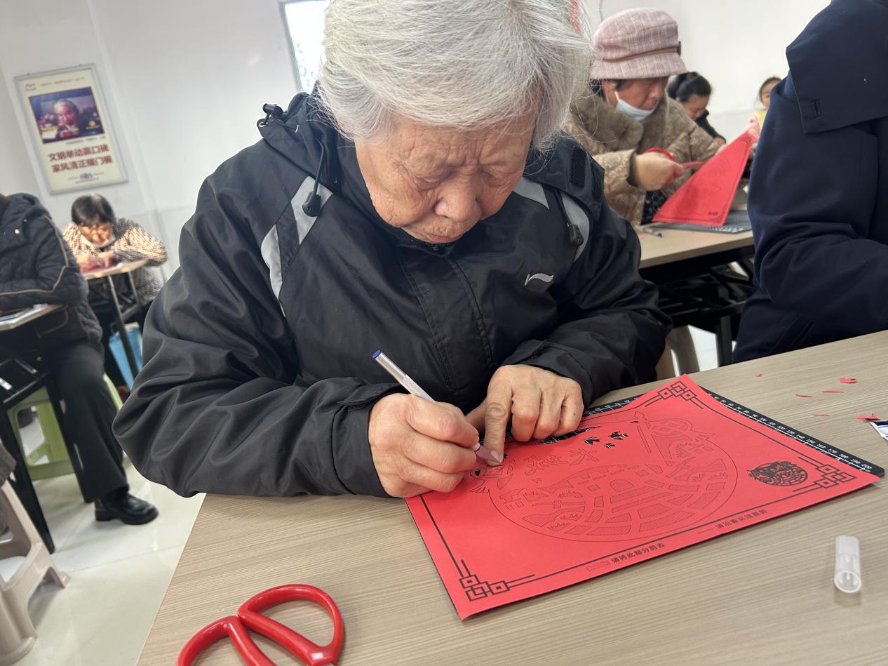 活动特别邀请了本地非遗剪纸传承人夏老师现场授课。夏老师从折纸技巧、纹样勾勒讲起,细致示范党徽、党旗、红船等红色主题图案的剪刻方法。参与者们围坐在一起,跟着老师的指导认真创作,老党员带着青少年折纸、下剪,邻里间相互切磋技巧,现场氛围温馨热烈。经过一个多小时的创作,一幅幅线条流畅、寓意深刻的剪纸作品相继完成,庄严的党徽、飘扬的党旗、展翅的和平鸽跃然纸上,每一幅都饱含着大家对党的深情祝福和对祖国发展的美好期许。