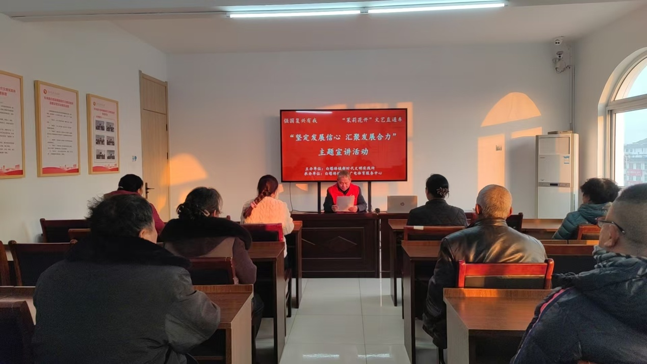 中国江苏网12月5日连云港讯 “我们要主动聚焦产业强镇、文化兴镇,坚定信心、鼓足干劲,抢抓机遇、乘势而上,在推动镇域经济社会高质量发展上展现新担当、新作为,为发展新质生产力、建设‘强富美高’幸福白塔埠凝聚合力……”近日,在整洁一新的白塔道德讲堂内,一场主题为“坚定发展信心 汇聚发展合力”的宣讲会拉开序幕,“百姓名嘴”徐月祥精彩的演说吸引着众多村民驻足聆听。
