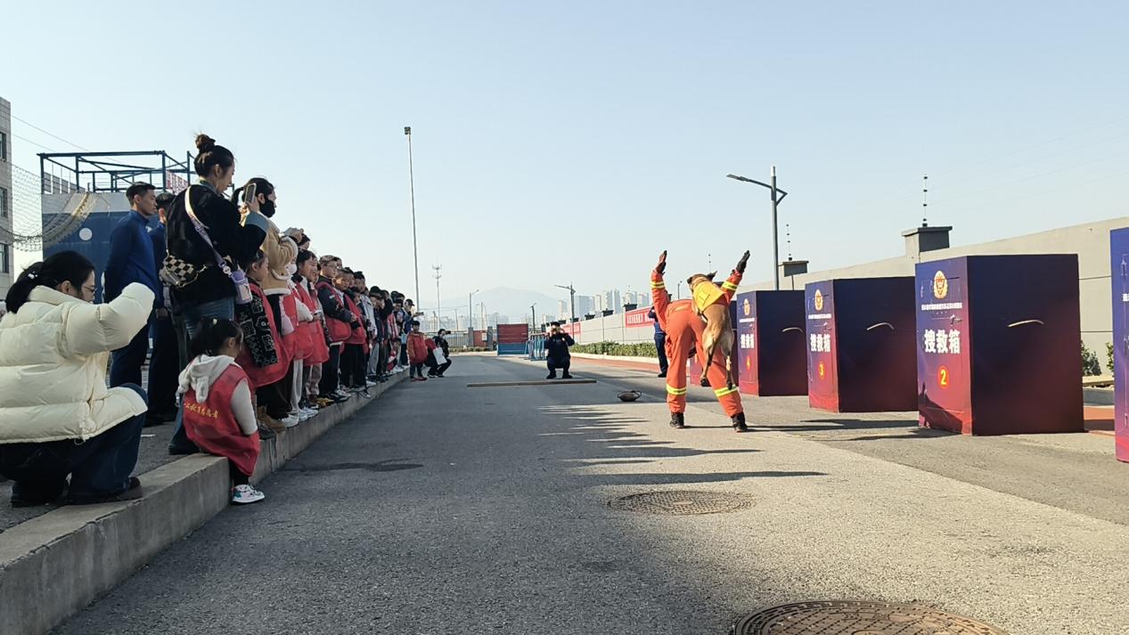 搜救犬训练成为活动的一大亮点。训练有素的搜救犬精准执行各项指令,并在模拟搜救中展现出与人协同作战的高效能力,赢得阵阵掌声。活动尾声,消防员现场演示“生活区出警”全流程,从警铃响起到装备登车,整个过程紧张有序,生动诠释了“时间就是生命”的救援理念。