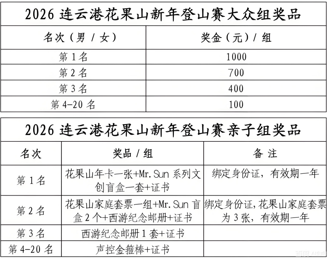 本次赛事以“花果山巅迎新岁,健步云端启新程”为主题,由连云港市云台山风景名胜区管理委员会、连云港市体育局联合主办,连云港市花果山风景区管理处承办。日前,主办方公布了一系列参赛福利,邀您共赴新春之约。