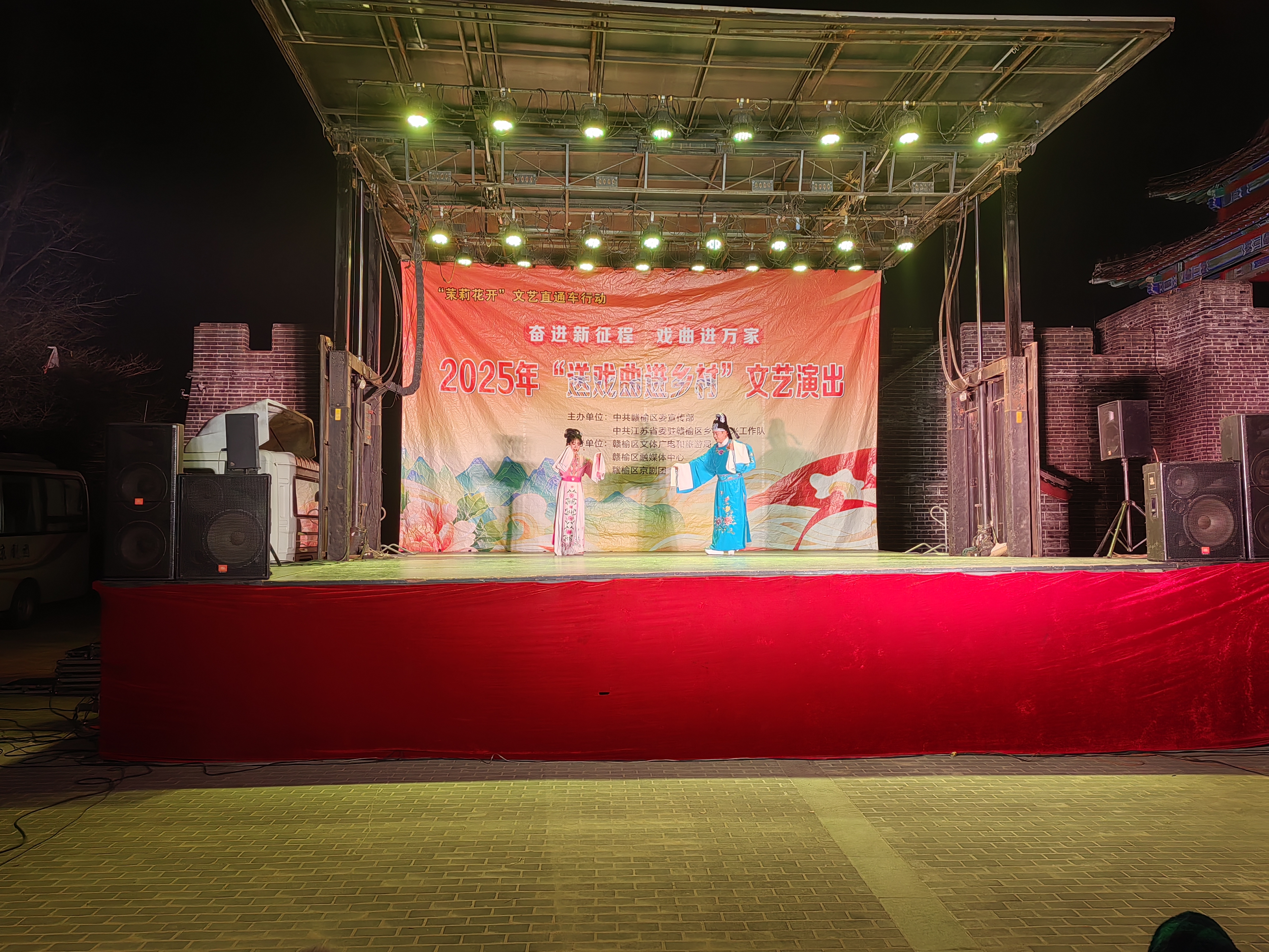 中国江苏网12月9日连云港讯 为深入实施文化惠民工程,丰富基层群众精神文化生活,推动移风易俗、树立文明新风,12月5日晚,“茉莉花开”文艺直通车暨“温暖秋冬”文明实践活动在赣榆区塔山镇土城村计斤门广场温情上演。本次活动以文艺为载体,将高质量的文化服务与“温暖秋冬”主题相结合,为初寒时节的乡村夜晚注入了浓浓暖意与艺术光彩。