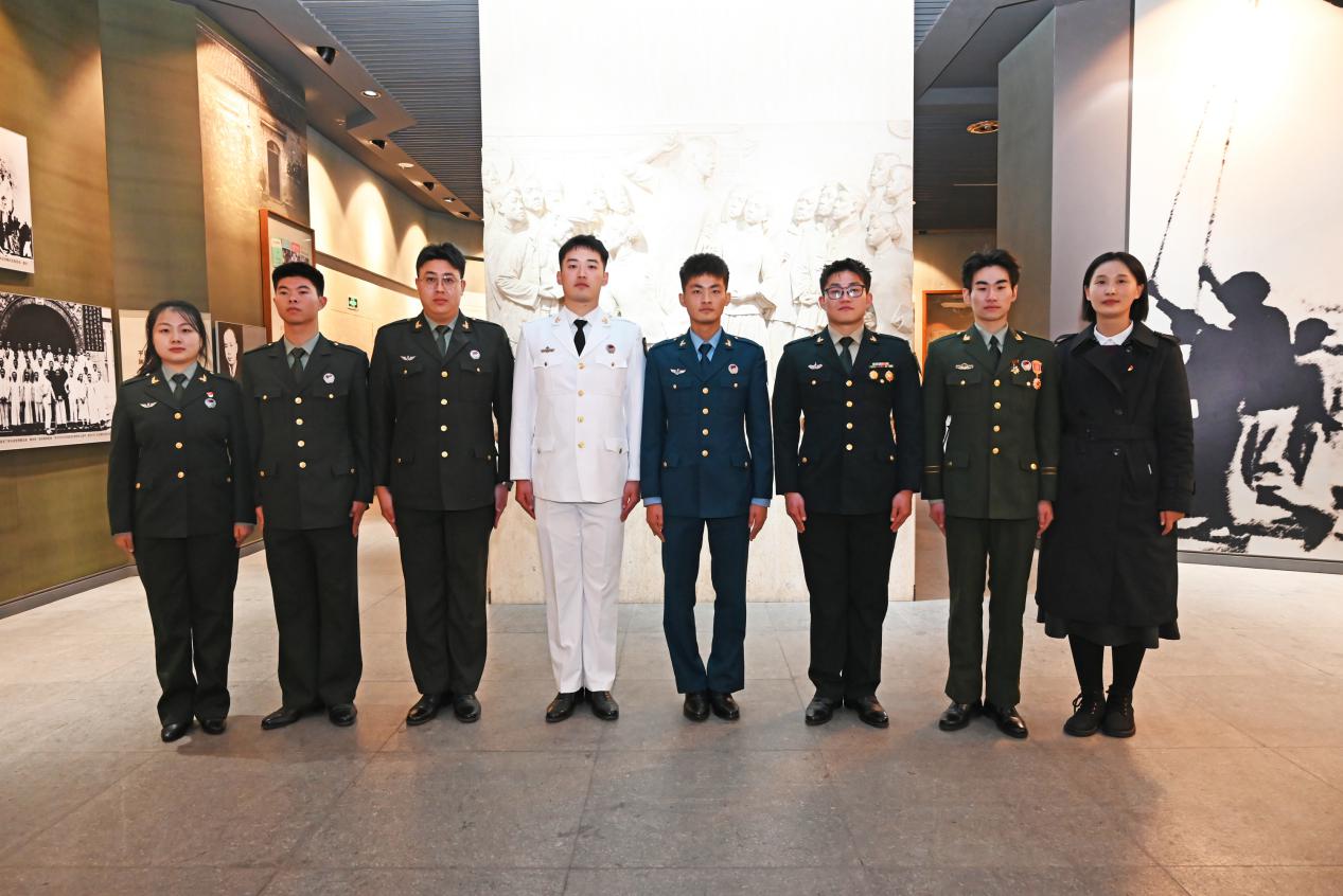 主题宣讲中,7名退役大学生士兵在五四运动时期展厅、土地革命时期展厅、抗日战争时期展厅以及解放战争时期展厅,分别介绍了连云港本地革命英雄的光荣事迹和感人至深的抗战故事。他们用生动的语言、鲜活的事例,将那段波澜壮阔的历史画卷徐徐展开,让在场的每一位师生都仿佛置身于那个战火纷飞的年代,深刻感受到了革命先烈们为了国家独立、民族解放,不惜抛头颅、洒热血的伟大精神。从青马“学员”淬炼为“教员”,火箭军某部队五年服役归来的梁又中面对采访深情道:“站在英雄墙前,我更加懂得什么是牺牲与奉献。‘若有战,召必回’不仅是一句誓言,更是融入血脉的担当。我们要把抗战精神和‘一二·九’精神传承下去,学好知识、增强本领,随时准备为祖国贡献力量。”