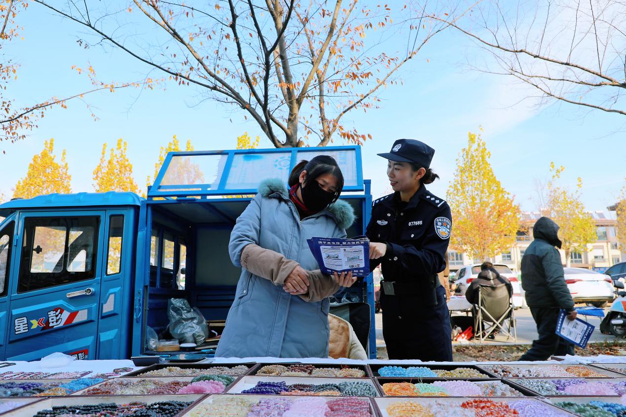 曲阳水晶产业繁荣,每逢集市,曲阳水晶街人流如织,交易活跃。曲阳派出所紧贴辖区特点,坚持防范为先,主动将反诈宣传阵地前移,组织民警辅警利用水晶大集人流量大的契机,走进热闹的曲阳水晶街,开设“集市反诈小课堂”。