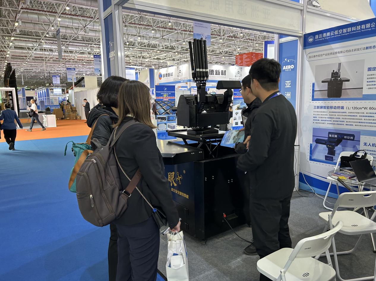 在低空经济赛道,海州区没有盲目跟风,而是精准找准“防风险、保安全”的细分方向,深耕低空安全产业,同时拓展多元应用场景,实现“安全筑基、产业赋能”的双重突破。11月27日的2025亚洲通用航空展上,海州区国有企业连云港低空投自主研发的“火眼”系列无人机反制设备一经亮相便备受关注:固定式设备实现非法无人机侦测、识别、跟踪、反制全流程自动化,为重点区域筑牢低空防护网;智能移动式设备凭借高机动性,可灵活应对应急处突等复杂场景。