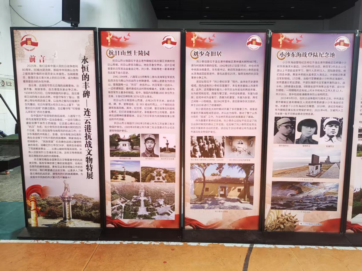 抗战文物特展板块聚焦连云港作为战略要地的抗战历程,通过文物与史料再现了1938年连云港保卫战、丫髻山与围屏山防御工事、周从权题刻、马鞍山烈士陵园等重要史迹。同时介绍了刘少奇在大树村指导抗战、小沙东海战英烈事迹以及汤曙红烈士的光荣故事,勾勒出连云港地区波澜壮阔的敌后抗战画卷。