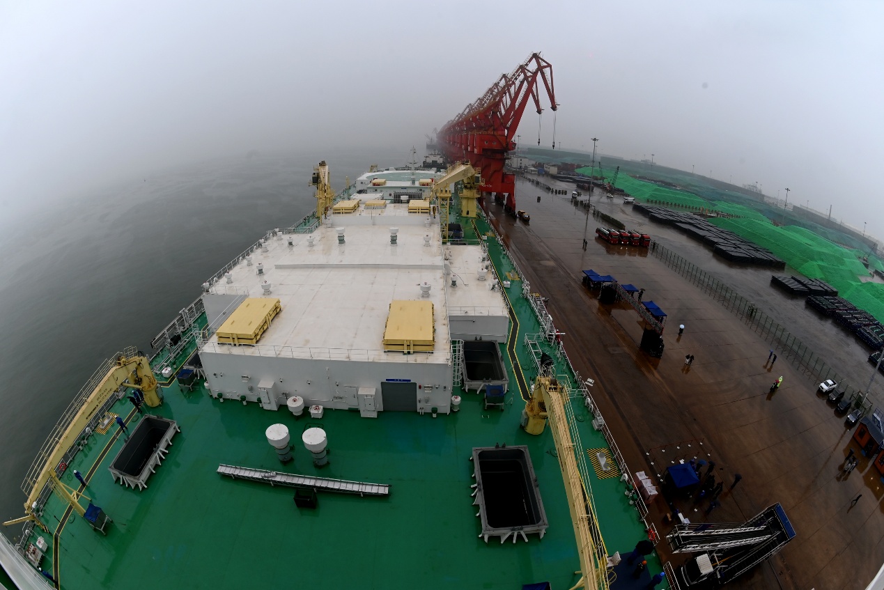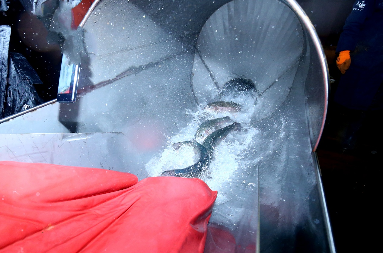 中国江苏网讯 12月23日上午,全球首艘10万吨级三文鱼大型养殖工船“苏海1号”,在连云港赣榆港区新海湾码头启动鱼苗入舱作业。随着一批批经过盐化驯化的优质鱼苗平稳进入专用养殖舱,江苏利用养殖工船实施游弋式深远海智慧养殖正式进入重要转段环节,也标志着连云港“岸海一体化”海洋经济发展迈入全新里程碑,彰显出这座沿海城市向海图强、发展现代海洋经济的坚定信心与扎实行动。