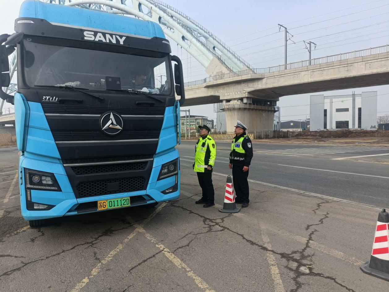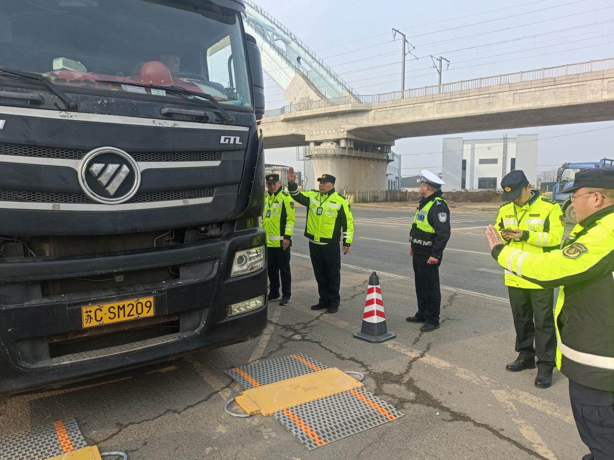 中国江苏网12月26日连云港讯 元旦将至,为切实保障岁末年初道路交通安全畅通,持续保持对超限超载运输、“两客一危”等重点车辆非法营运及违法违规行为的高压严管态势,进一步提升跨区域联合执法效能与协同作战能力,有效增强人民群众出行的安全感与满意度,12月24日,东海县公安局交管大队联合东海县交通运输综合行政执法大队、新沂市交通运输综合行政执法大队,在G311国道东海与新沂交界区域开展了跨区域联合执法整治行动。