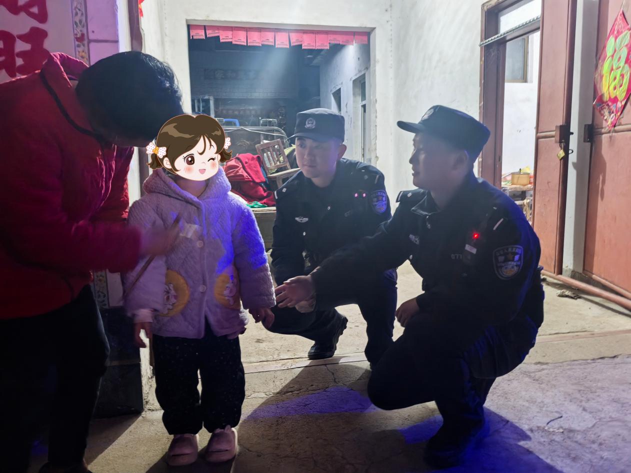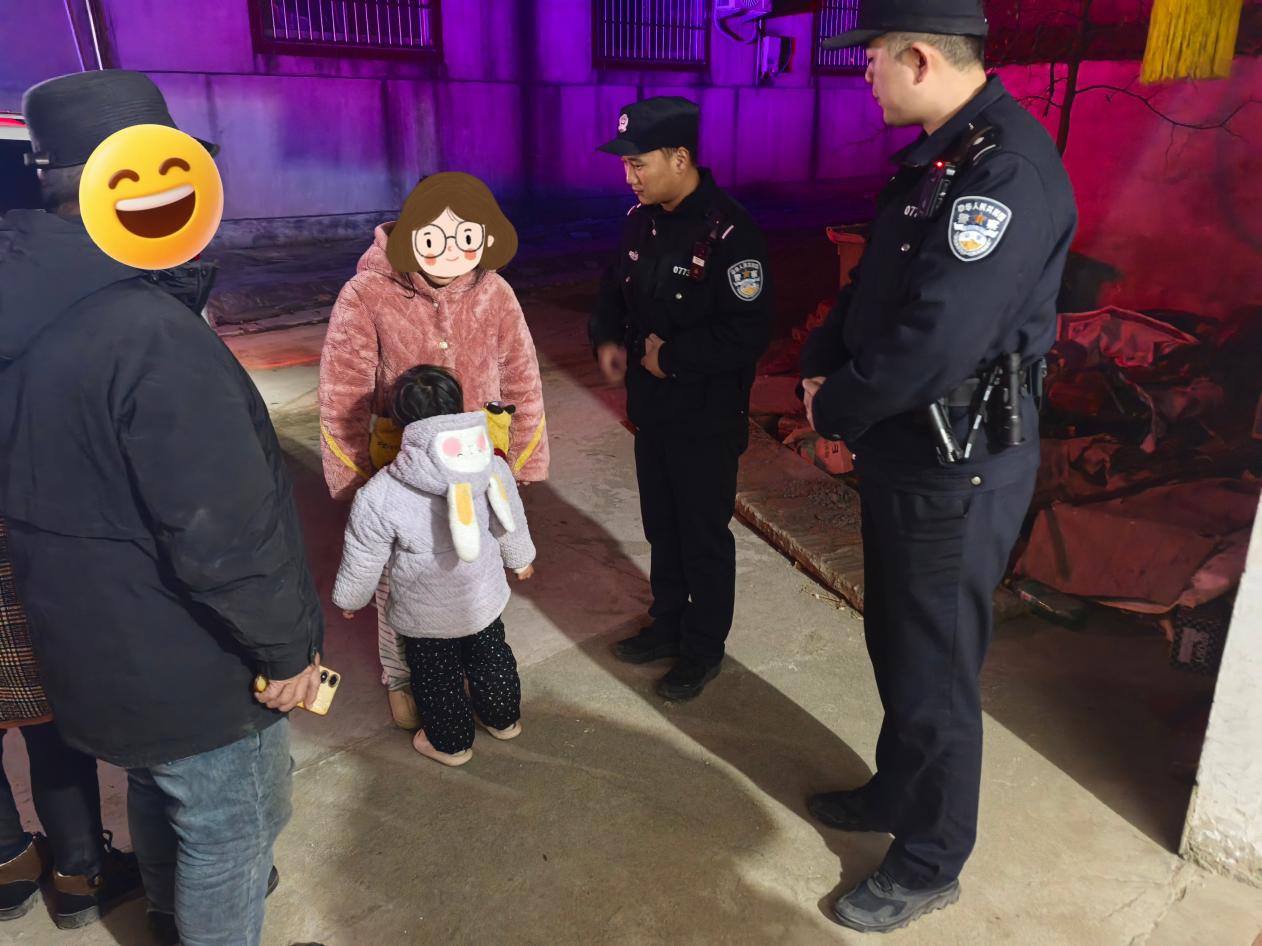 12月25日晚上8时许,黄川派出所民警乔瑞、许恒齐在出警返回途中,行至310国道时湖村路段时,发现一名约三四岁的小女孩正独自在路边行走,情况危险。民警立即下车,耐心安抚并询问。由于孩子年龄尚小,无法清晰说出姓名和住址。为尽快找到家人,民警牵着孩子的手,在附近村庄挨家挨户询问。最终,一位村民认出了女孩,民警顺利将她送回家中。经了解,女孩是因家中一时无人看护,自己开门外出。看到孩子安然无恙,匆匆赶回的家属对民警的热心帮助感激不已。