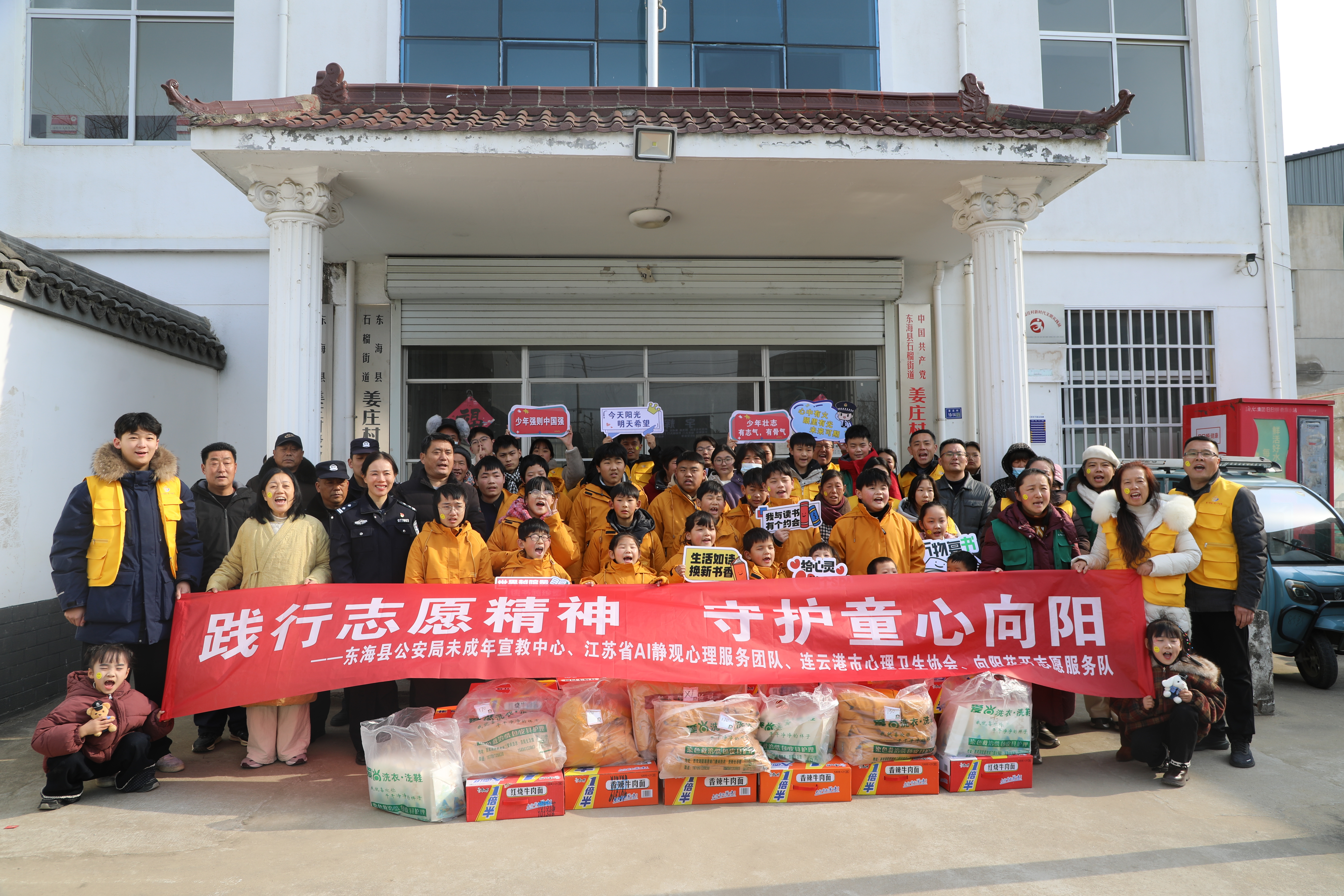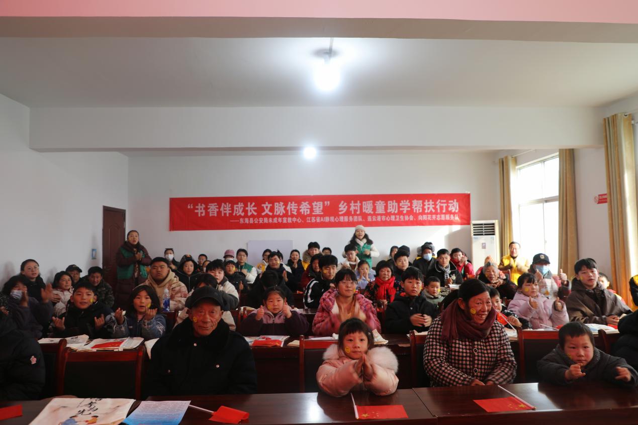 此次活动由东海县公安局未成年宣教中心 联合江苏省AI静观心理服务团队、连云港市心理卫生协会、东海县公安局向阳花开志愿服务队、石榴街道姜李村党群服务中心举办,旨在通过文化传承、法治护航、心理滋养与志愿陪伴的多元融合,为当地20余名乡村留守儿童打造了一个温暖、启迪且充满力量的新年开端,陪伴他们共同开启充满希望的一年。