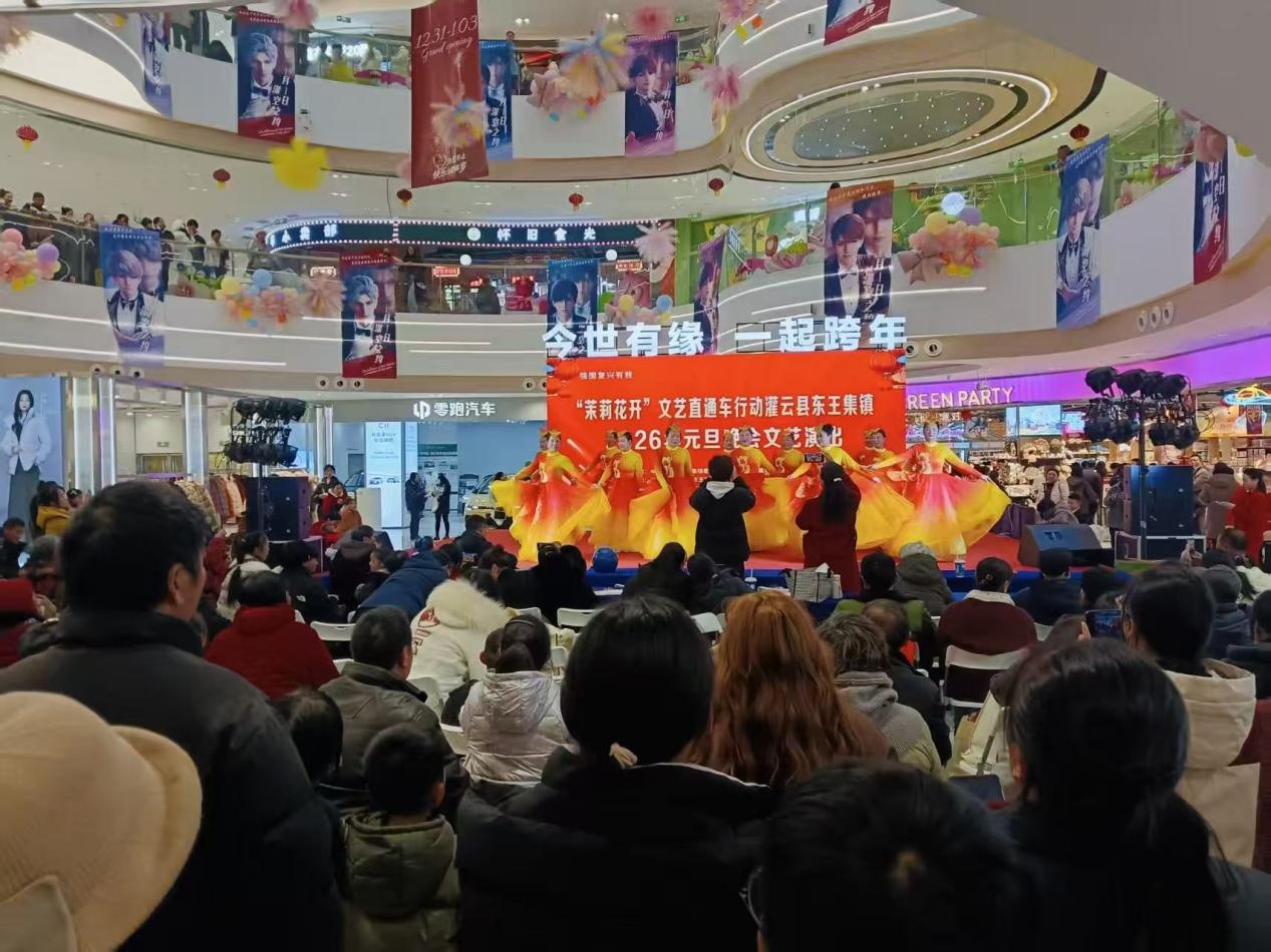 中国江苏网1月2日连云港讯 2025年12月31日晚,灌云县万达广场灯光璀璨、笑语盈盈,“茉莉花开·元旦晚会”在此热烈上演。十三台精心编排的文艺节目串联成一场视听盛宴,陪伴近千名居民在欢声笑语中共同迎接2026年的到来。