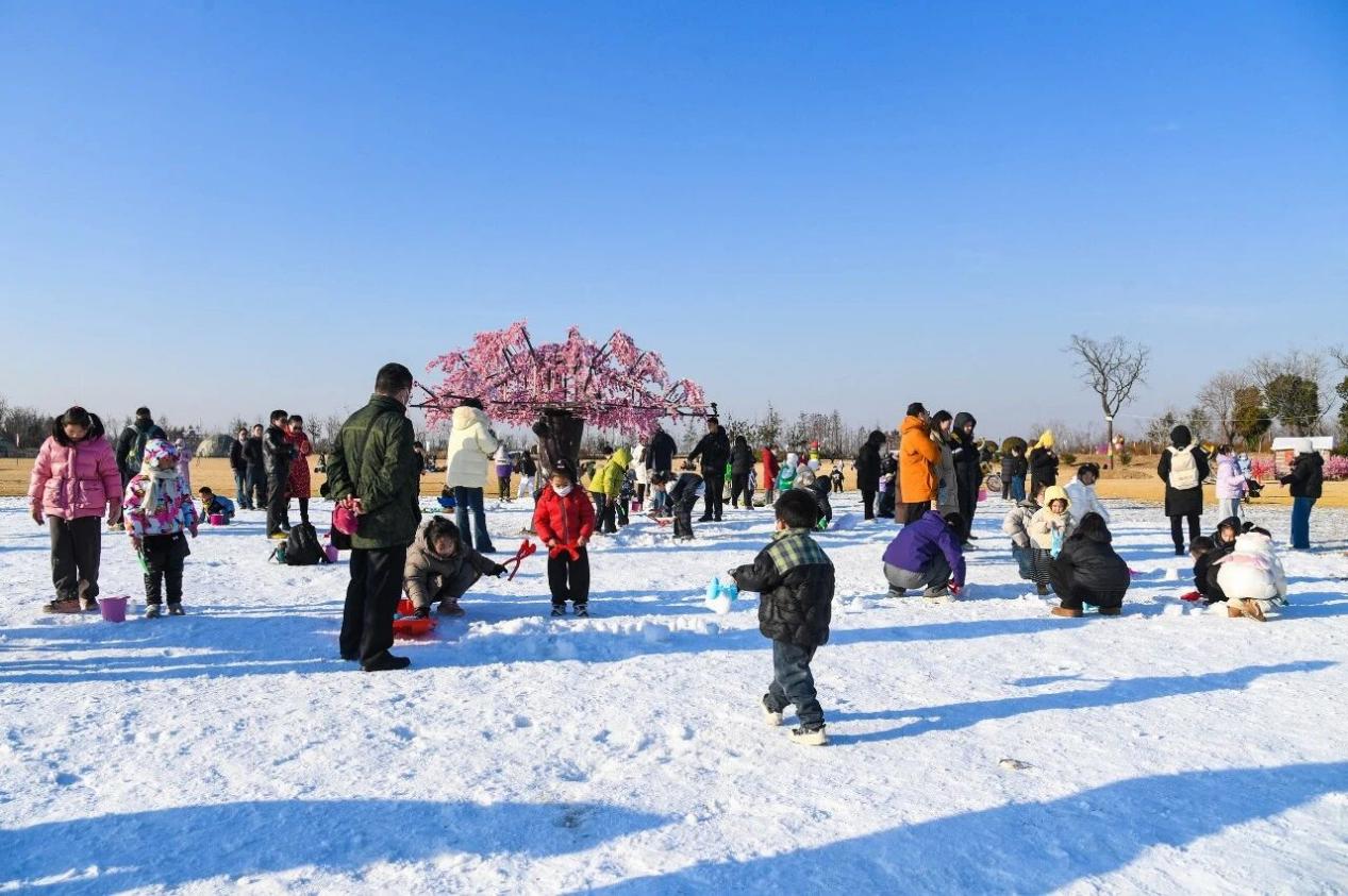 玩累了可移步百草园区域,真人CS、射箭射击、休闲露营等项目各具乐趣,实现一站式冬日游玩体验。此外,月牙岛北湖游客络绎不绝,游客或与亲友泛舟湖上尽享静谧,或在木栈道旁观赏黑天鹅嬉戏;观鸟书苑的DIY手工活动也备受青睐,游客亲手制作新年礼物,寄托美好期许。骑行观光自行车穿行园区、搭乘小火车惬意漫游等方式,也让游客沉浸式感受冬日风光与新年氛围。