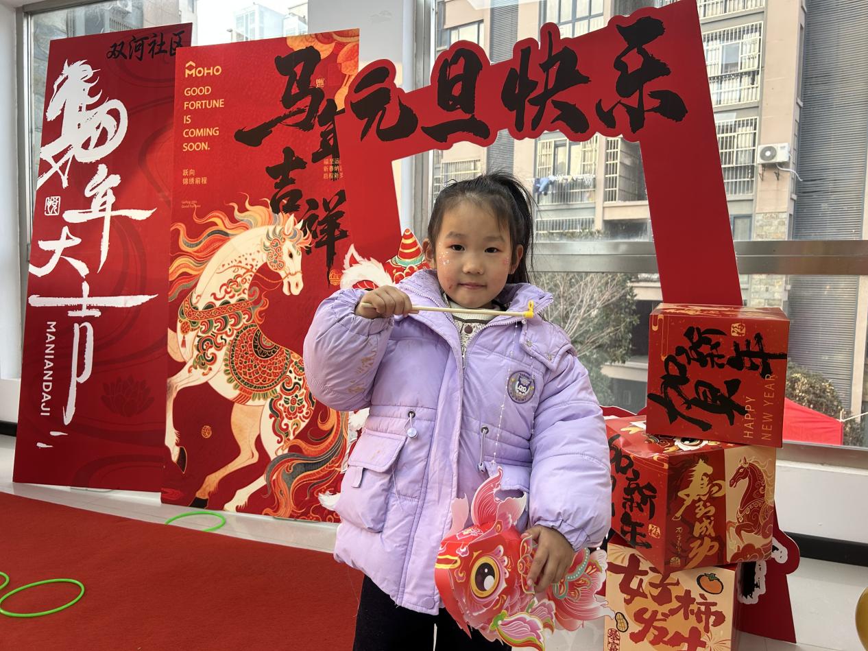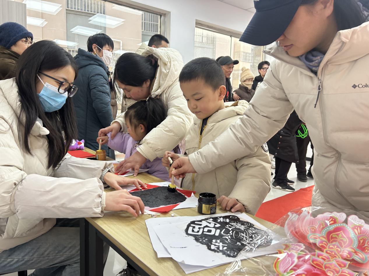 在双河社区,一场融合传统与现代的趣味嘉年华吸引了众多居民参与。充满怀旧情怀的套圈游戏区,老少同乐,欢声不断;翰墨飘香的拓印福字体验区,居民亲手制作承载祝福的“福”字,感受书法艺术的韵味;非遗鱼灯制作区,家长与孩子共同动手,在拼接组装中了解“年年有余”的美好寓意,传承传统技艺;巧手编织万字结的区域,彩线翻飞间,不仅编织出吉祥饰品,更串联起温馨的邻里情谊。这些活动注重家庭互动与代际交流,让节日氛围更加浓厚。