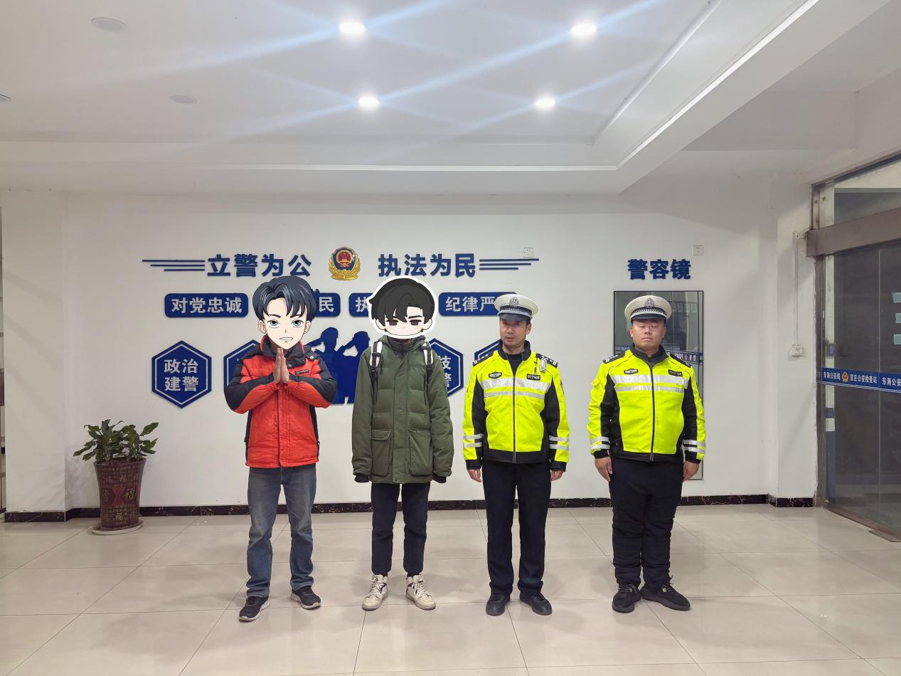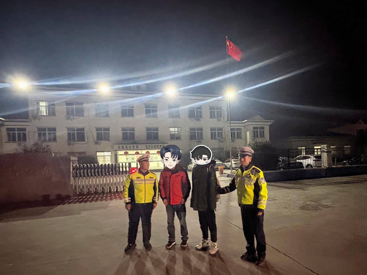 1月4日晚10时30分许,气温已降至零下,东海县公安局交管大队桃林中队民警王举龙带领辅警周大朋、庄士隆、姚帅在辖区开展夜间巡逻。当警车行驶至236省道桃林段时,一个孤独的身影引起了他们的注意——一名少年背着书包,独自在寒风中踽踽独行,步履迟缓,情绪明显低落。