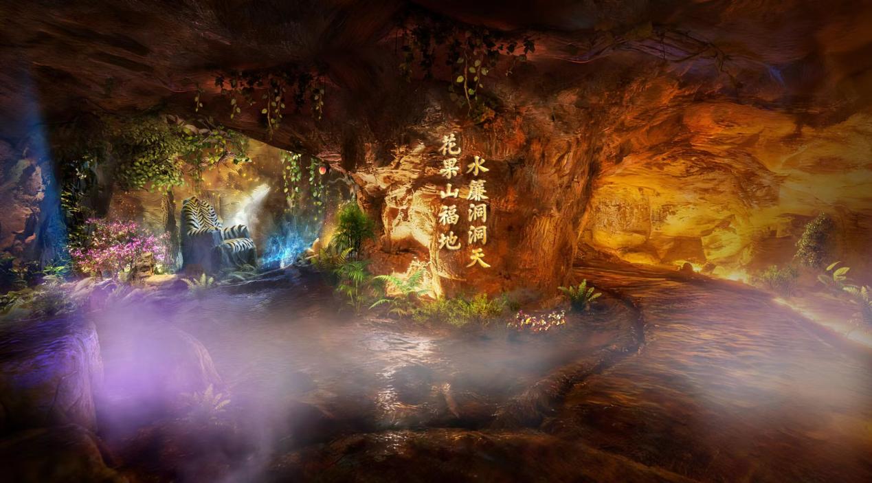 通过深入挖掘西游文化内涵,并融合现代科技与景观艺术手法,系统优化水帘洞的空间布局、灯光音效与游览动线,在虚实交融中再现西游的奇幻意境。建成后,游客不仅能“看见”西游故事,更能“走进”西游故事,沉浸式体验齐天大圣的传说世界。