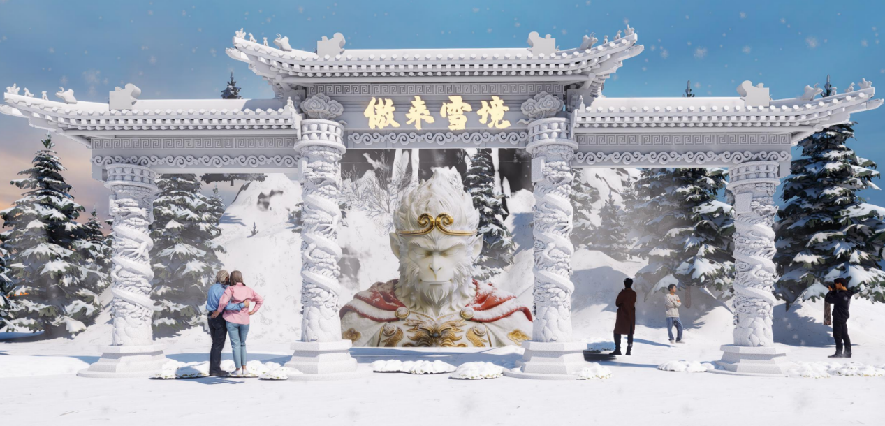 随着冬季到来,花果山景区紧抓“冰雪经济”机遇,将《西游记》经典场景与冰雪游乐体验深度融合,创新推出“傲来雪境”沉浸式主题戏雪乐园。不仅打造以“悟空头像”为核心的入口形象,还精心创作“火焰山”“盘丝洞”“仙境浮岛”“玫瑰雪山”等系列主题雪雕艺术景观,让游客仿佛穿越进入冰雪神话世界。为进一步增强沉浸氛围,还计划组织专业演职人员扮演唐僧、孙悟空、猪八戒、沙僧以及牛魔王、铁扇公主等众多西游经典角色,穿梭于雪景之中,开展剧情互动、游戏挑战与拍照留念活动,让游客不仅是观赏者,更成为西游故事的一部分。