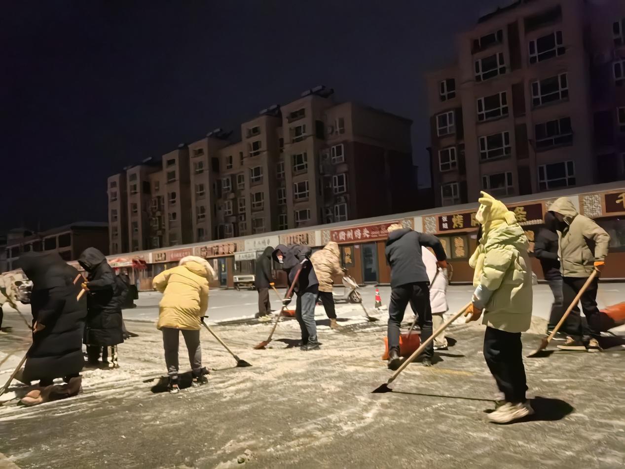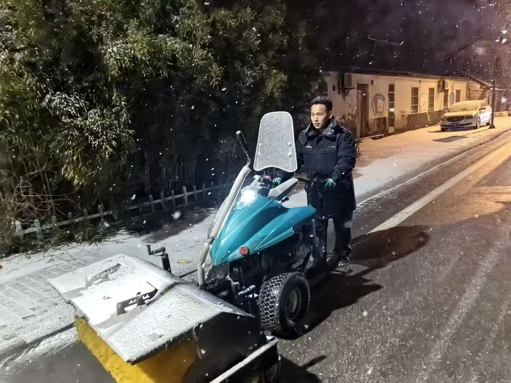 为保障居民出行安全顺畅,锦屏镇于20日凌晨紧急启动应急预案,组织力量连夜开展扫雪除冰攻坚。行动中,全镇调集20余台铲车等设备,对主干道进行高强度清雪,并在关键路段精准撒布融雪剂24吨,防止道路结冰。针对背街小巷、居民小区等区域,采取“人力下沉、灵活攻坚”策略,动员420名镇村工作人员,配以小型铲雪设备,对约60条狭窄路段进行细致清理,全力打通居民出行的“最后一公里”,将清理工作延伸至群众家门口。