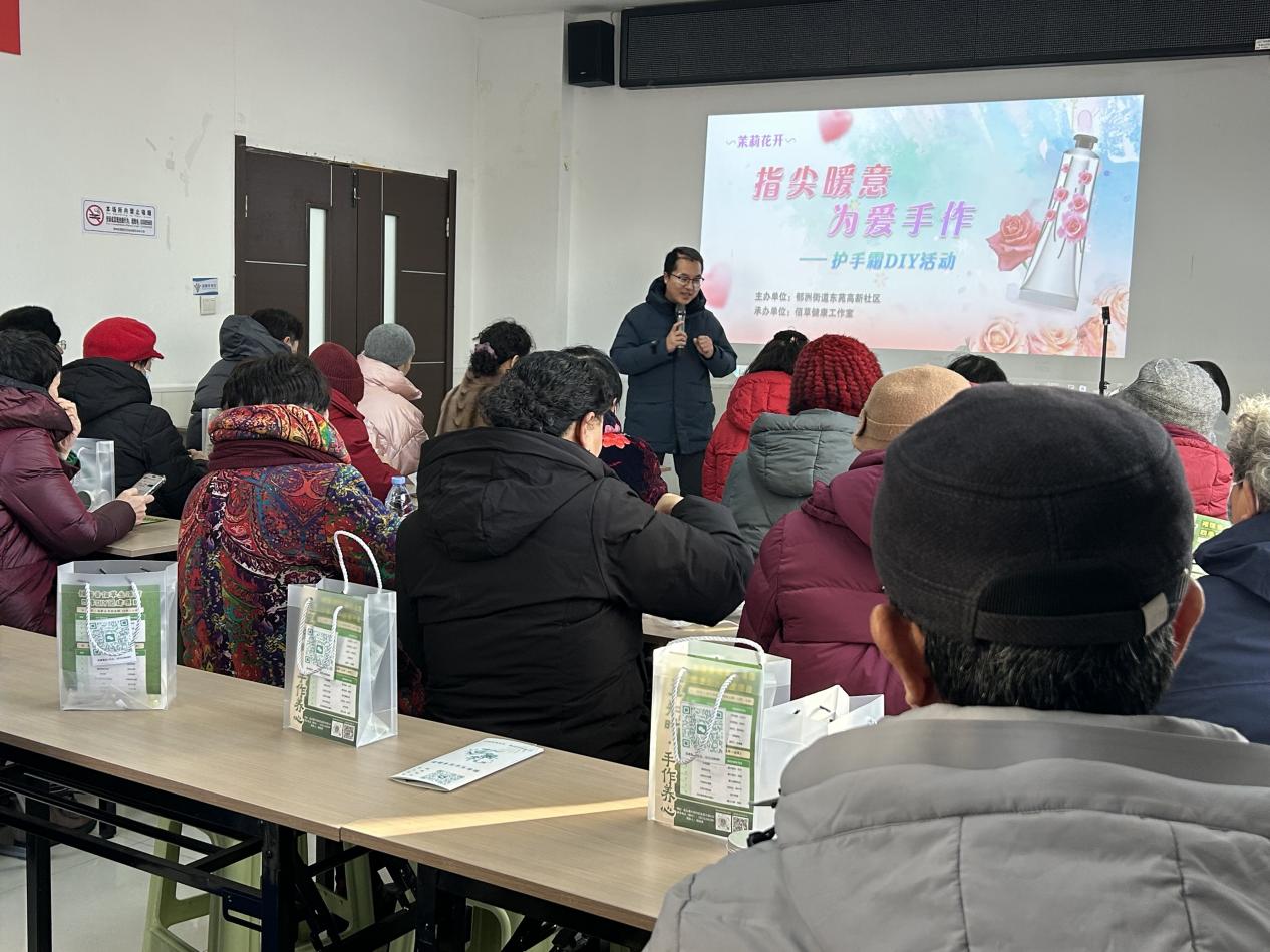 “冬天手容易干裂,自己做的护手霜用起来更放心,这份护手霜是送给我老伴最好的礼物!”居民高叔叔捧着刚做好的护手霜,脸上洋溢着满足的笑容。