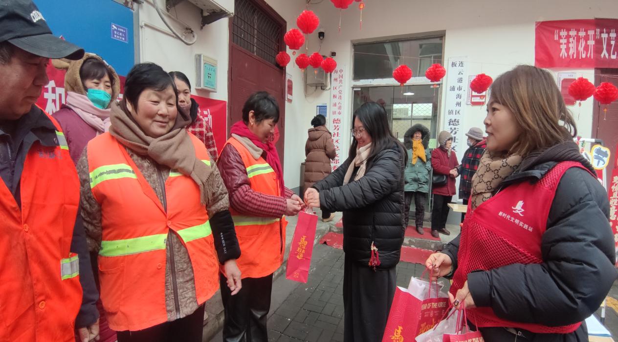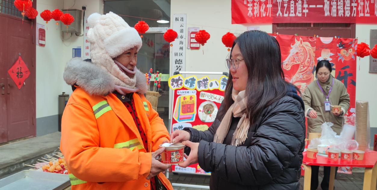 中国江苏网1月26日连云港讯 近日,冬日的寒风中洋溢着浓浓温情,板浦镇德芳社区在党群服务中心同步开展了主题为“情暖新就业群体、共筑和美幸福社区”的腊八关爱活动,为辖区内的快递员、环卫工人等新就业群体送去节日的问候与实实在在的关怀。