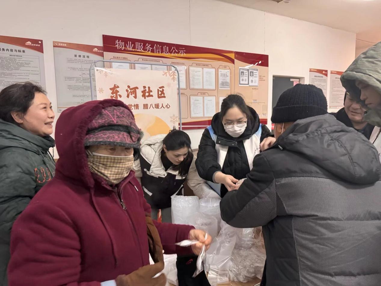 清晨伊始,各社区活动点便粥香四溢,暖意融融。凤梧社区聚焦外卖小哥等新就业群体,邀请他们共聚一堂品粥叙情;东苑高新社区的“暖心小分队”在集中发放的同时,深入独居老人、残疾人家中,将粥与祝福一同送达;河滨社区以“茶话会”形式,让居民在品粥话家常中增进邻里情;东河社区分设两个党群服务发放点,并上门慰问高龄老人、老党员,附赠的茶叶蛋更添一份心意;西凤社区将温暖清晨送至环卫站点与建筑工地,并同步开展公益理发、健康检测等便民服务;学院社区通过“邻聚365”活动,让暖粥成为连接居民、企业与社区的温情纽带;淮海社区联合金老板爱心团队,专门在辖区万达广场门口为外卖骑手送上腊八粥及防寒物资,叮嘱他们劳逸结合、平安出行。