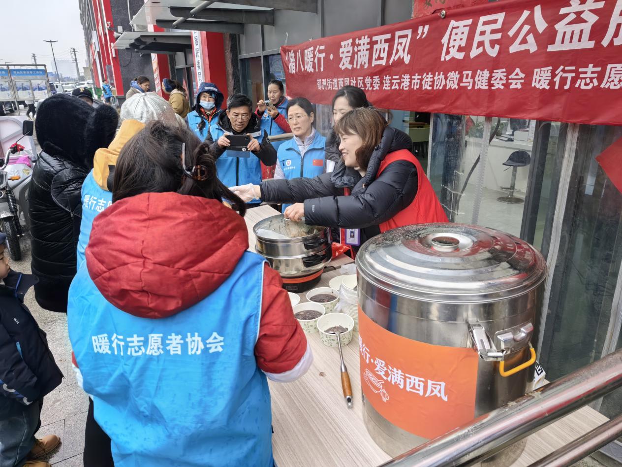 中国江苏网1月27日连云港讯 腊八至,粥香暖。1月26日农历腊月初八,海州区郁洲街道以“腊八暖行 爱满郁洲”为主题,联合海州区暖行志愿者协会,组织所辖七个社区同步开展腊八节送温暖活动,共同为辖区居民、一线劳动者、特殊群体及新就业形态劳动者送上节日的问候与社区的关怀。