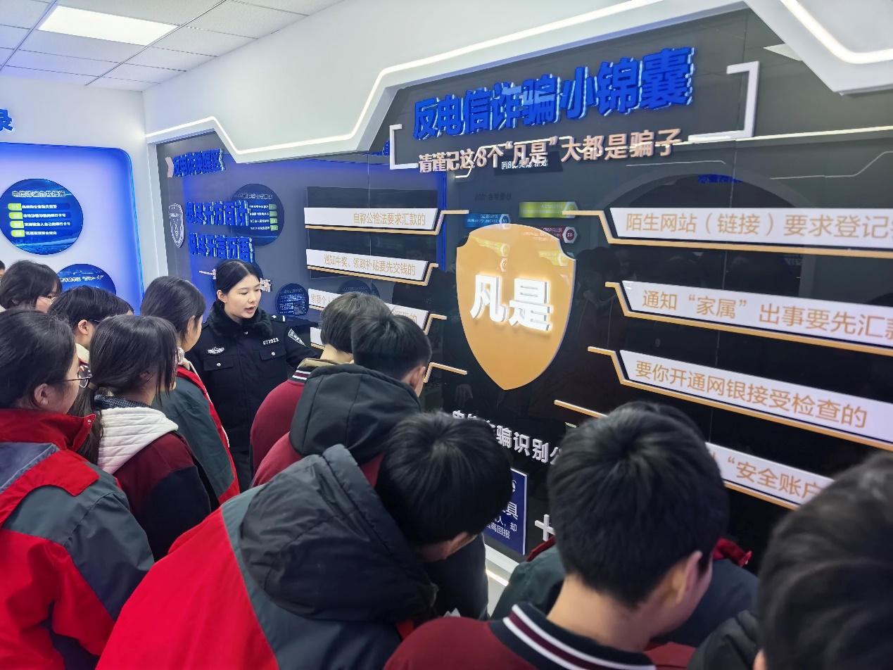 在宣传教室内,民警还通过宣传展板、案例视频等多种形式,使同学们直观感受到电信网络诈骗的隐蔽性与危害性。真实案例的警示,让反诈防骗的弦时刻紧绷。现场同学们认真聆听、积极互动,学习氛围浓厚。
