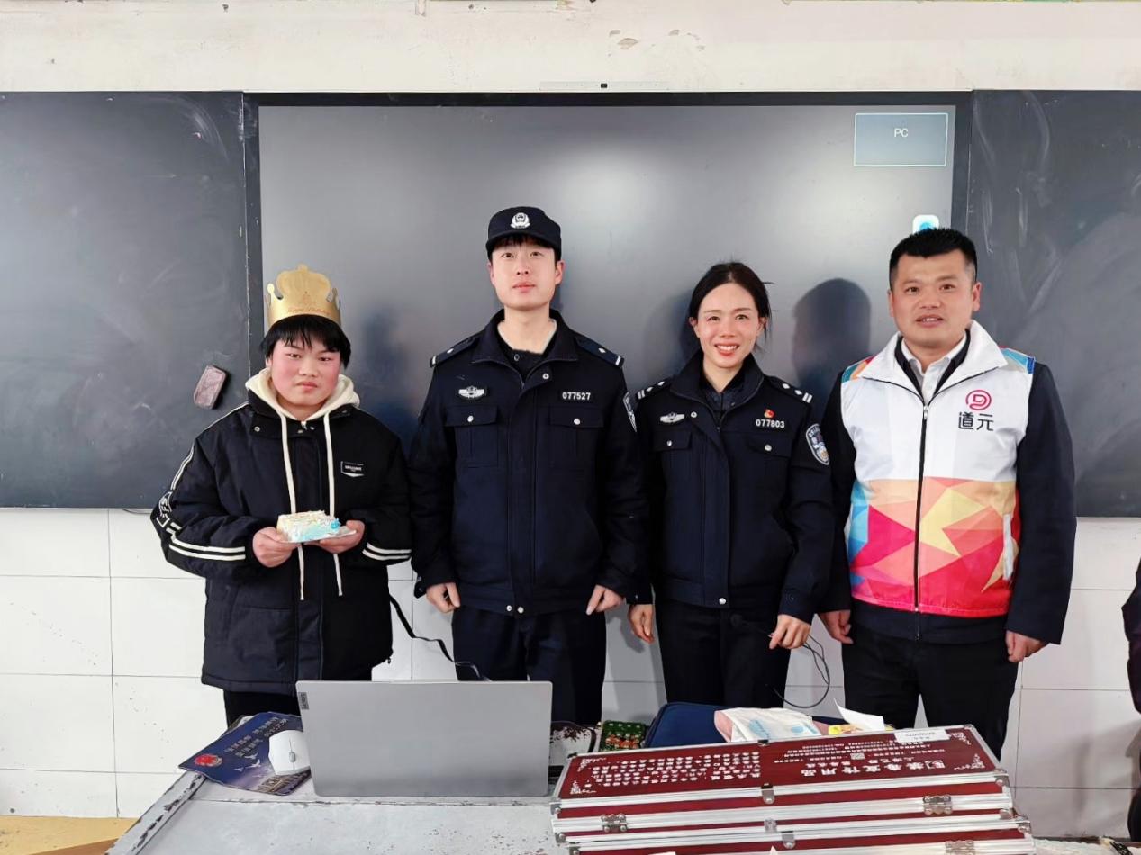 1月27日下午,安峰派出所创新宣传形式,联合东海县未成年人宣教中心、东海县道元志愿服务中心,共同走进辖区小学,举办了一场温馨而有意义的“法治生日”活动。活动中,民警和志愿者们为当月过生日的同学们准备了精美的生日蛋糕和纪念小礼品,在欢声笑语和祝福声中,将法治教育与成长关怀巧妙结合。随后,民警围绕与未成年人密切相关的法律法规,以及禁毒知识、防范电信网络诈骗等内容,进行了深入浅出地讲解,让孩子们在感受温暖与祝福的同时,也在心中播下了遵纪守法、明辨是非、远离危害的种子。
