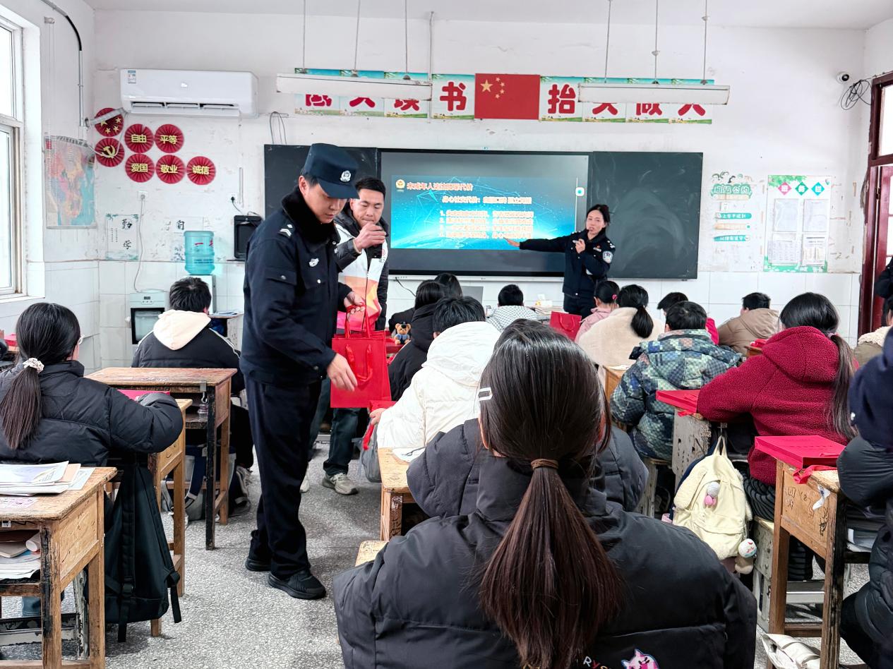 中国江苏网1月29日连云港讯 寒假将至,校园安全牵动人心。连日来,东海县公安局安峰派出所主动作为,深入辖区中小学,以形式多样的宣传活动,为孩子们送上寒假前的“安全大礼包”,用心用情守护青少年平安健康成长。