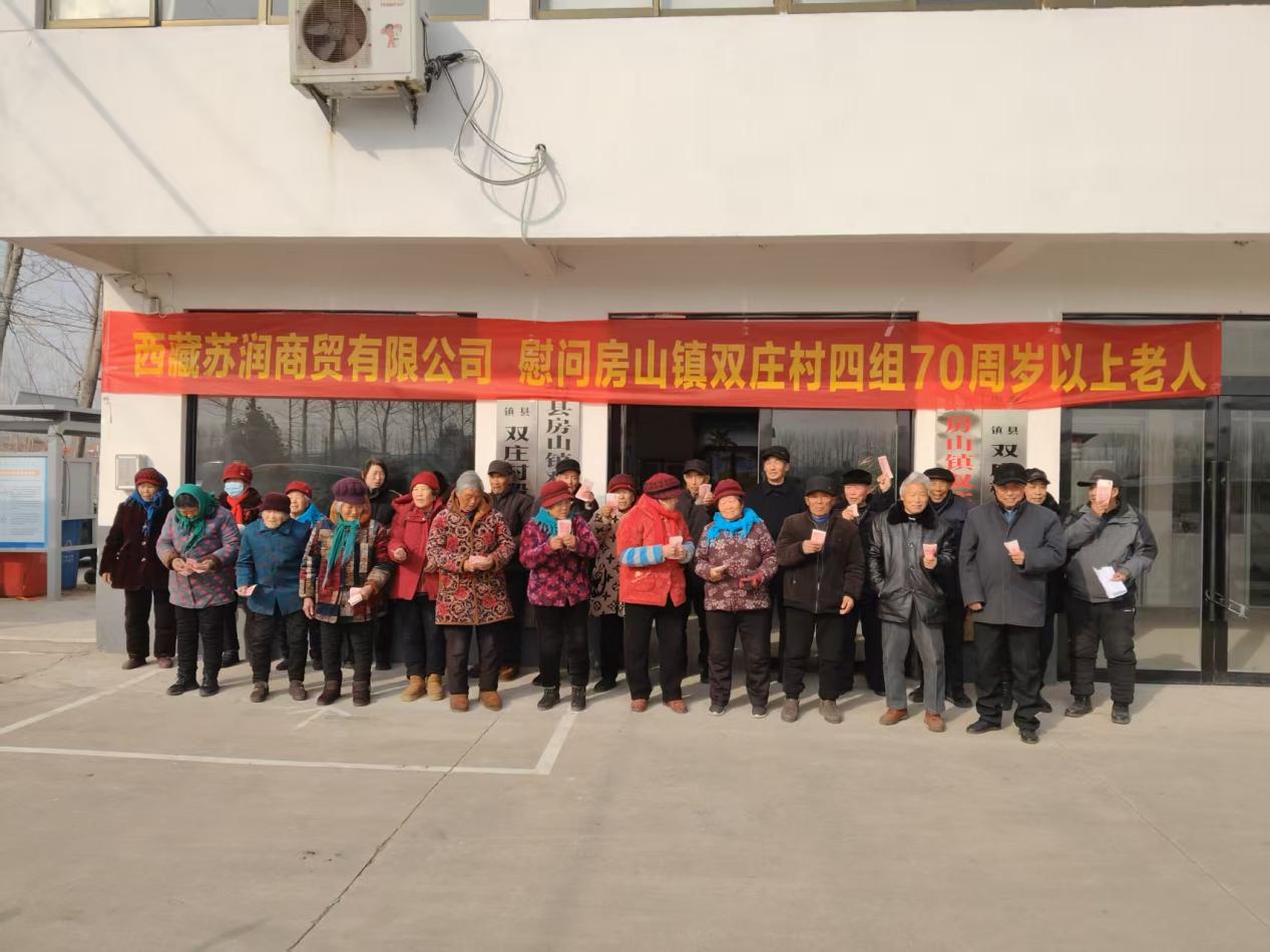 “陈奶奶,您最近身体怎么样呀?天气寒冷,要注意保暖哟!”“大爷,马上要春节了,提前祝您新年快乐!”一声声问候传递出最质朴的温情。在房山镇双庄村党群服务中心,一片融融暖意,欢声笑语不断。双庄村党支部书记陈维亮陪同西藏苏润商贸有限公司负责人许正萍,为双庄村四组的43位70周岁以上老人送上800元红包。许正萍亲手把红包送到每位老人的手中,并致以诚挚的关怀与美好的祝福,村“两委”成员与几百名村民共同见证了这一温馨时刻。