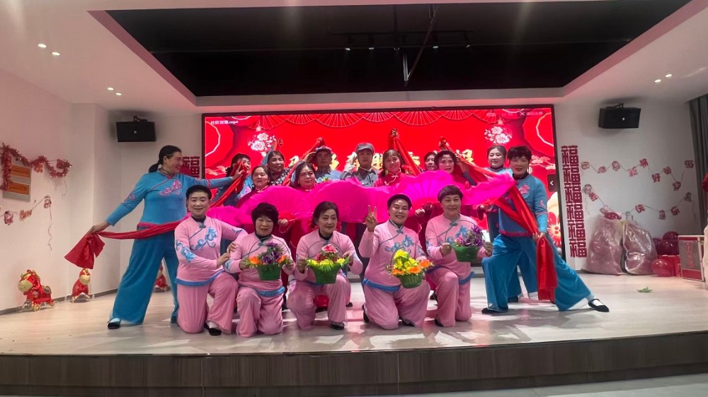 趣味表演之后,喜庆舞蹈《喜事连连》陆续登场。表演者们身着色彩鲜亮的演出服,红绸在手中翻飞如火焰,花篮里的花束映着一张张笑脸,每一舞步都踩出欢快的节拍,每一动作都饱含对生活的热爱。灵动的表演勾勒出社区邻里和睦、阖家欢乐的温馨画面,将浓浓的年味与幸福气息传递给现场每一位居民。