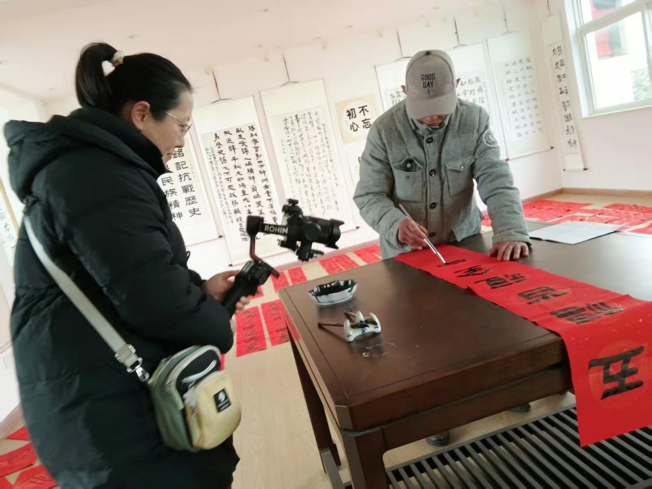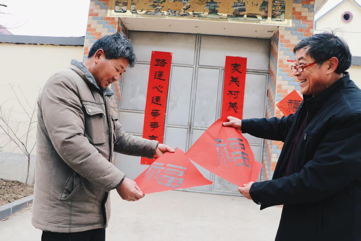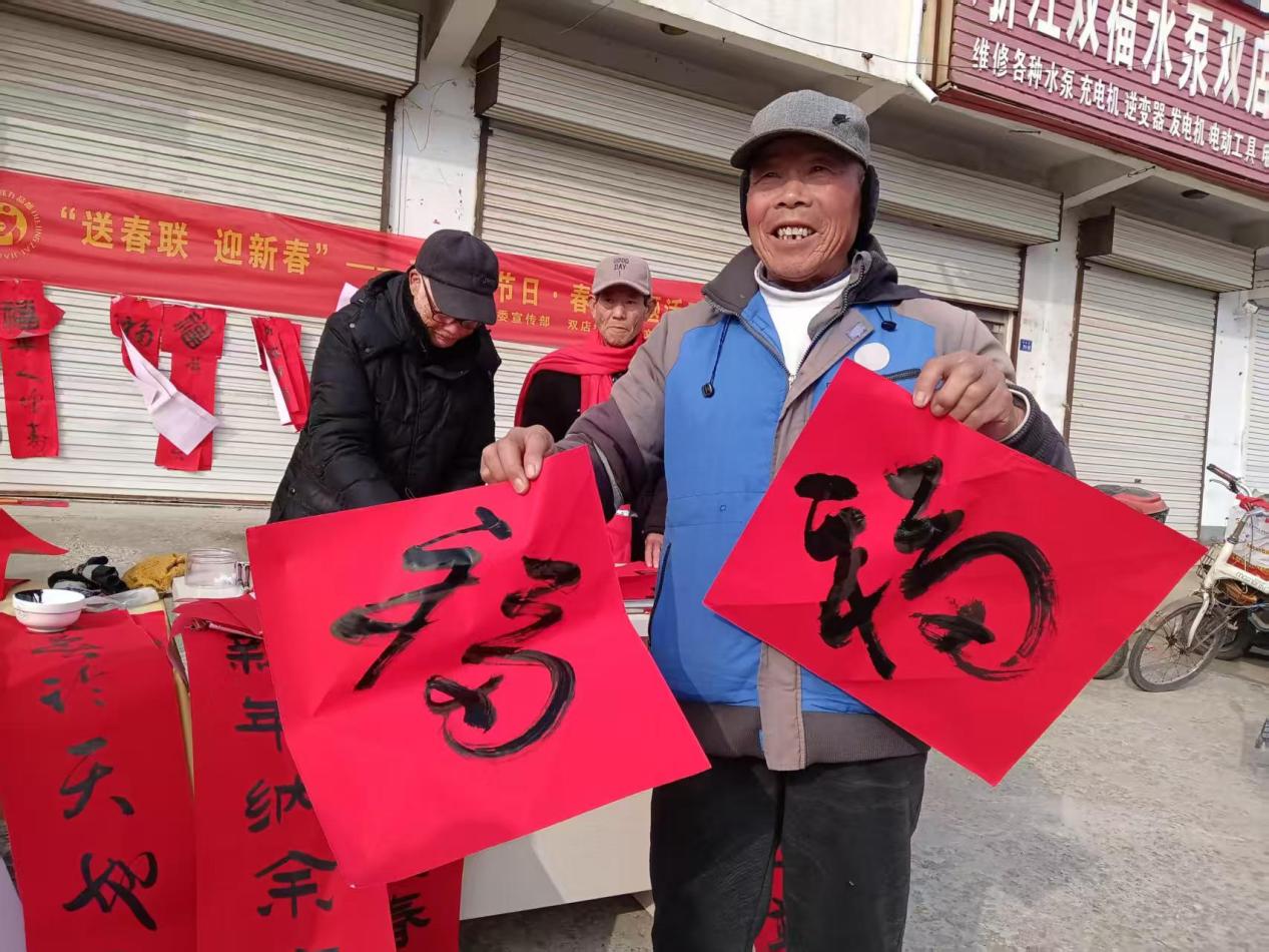 一支笔,一砚墨,这群书画爱好者,用一腔热忱和对艺术的执着,将新春的祝福化作笔端的温暖,温暖着乡亲们的心田。 “这么多年,我们在镇新时代文明实践所和镇文化站的组织下,经常开展送春联送书画活动。春节马上到来,在这里我们祝愿大家新年交好运,五福临门,马到成功。”中国诗词协会会员、离退休老干部提前给乡亲们拜年啦!(李化炜 宋彦伟)