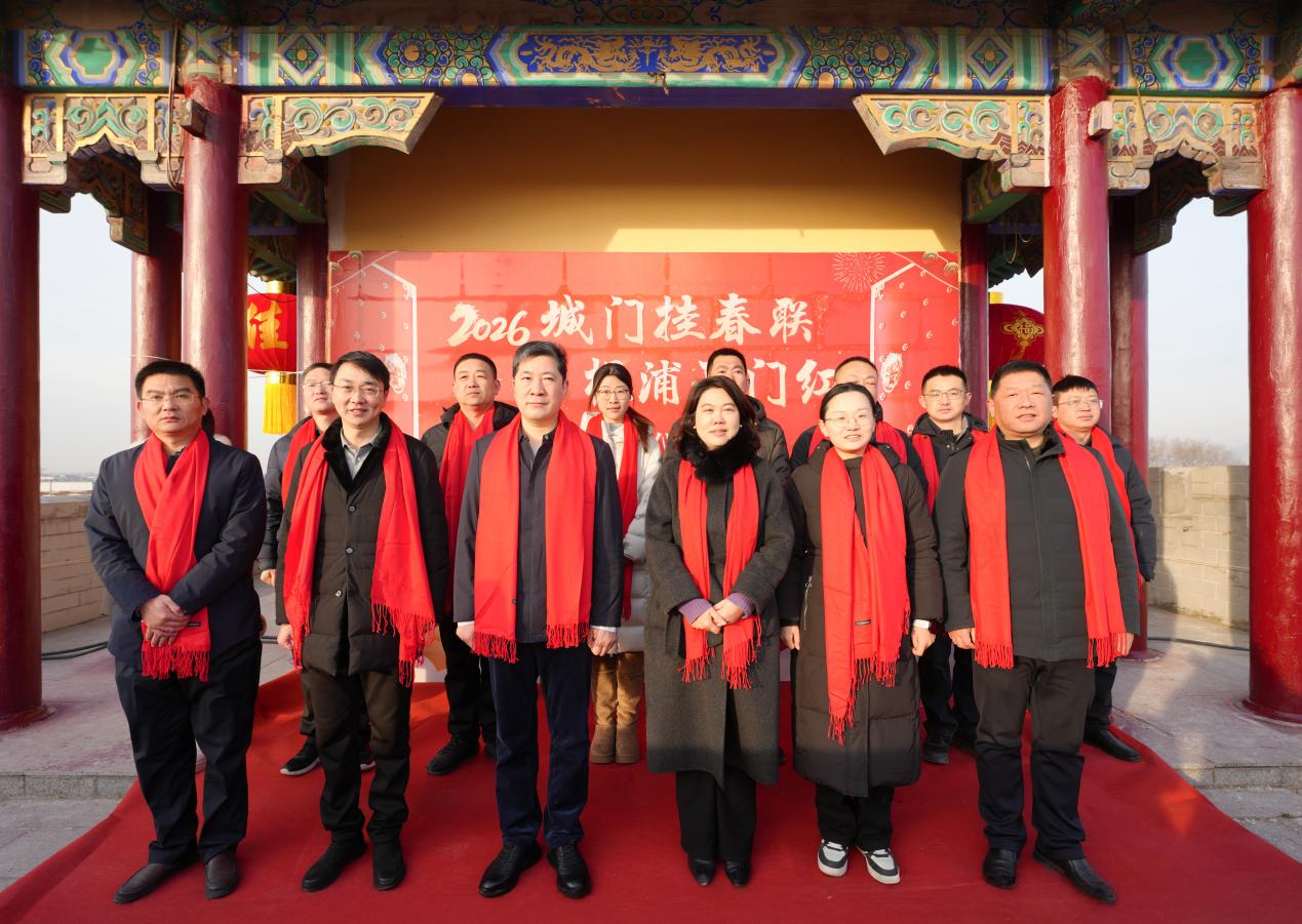 中国江苏网2月9日连云港讯 祥云献瑞,骏马迎春。2月9日上午7时58分,海州区板浦镇历史地标北海门前洋溢着浓烈的节日气氛。2026年“城门挂春联·板浦开门红”揭联仪式在此隆重举行,以传统与现代交融的方式,奏响海州大地喜迎新春、奋进新征程的华彩乐章。海州区委副书记、统战部部长,区政协党组副书记曹明朗,海州区党组成员、副区长桑爱越,板浦镇党委、政府领导班子成员,以及板浦镇基层干群代表等60多人齐聚一堂,共同见证这一文化盛事。
