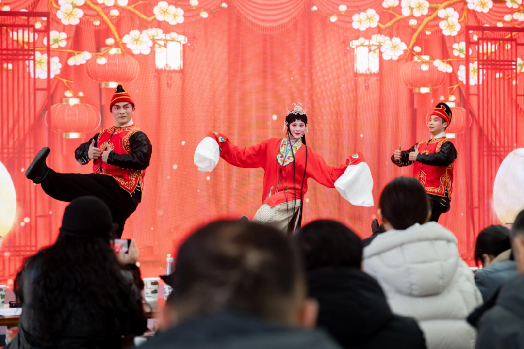 活动在铿锵的锣鼓声中拉开帷幕,一曲淮海戏《抬花轿》生动展现出传统婚俗的喜庆热烈与民间艺术的灵动诙谐,赢得现场阵阵掌声。