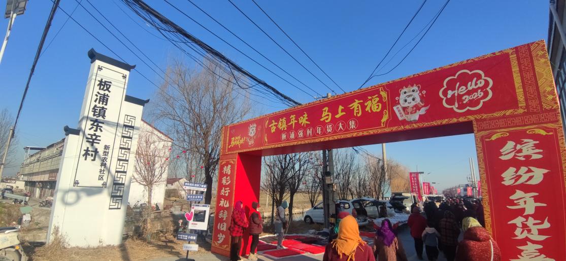 中国江苏网2月9日连云港讯 近日,由海州区板浦镇人民政府主办、板浦镇强村公司承办的“古镇年味 马上有福”板浦强村年货大集,在东辛村党群服务中心门前正式开集。