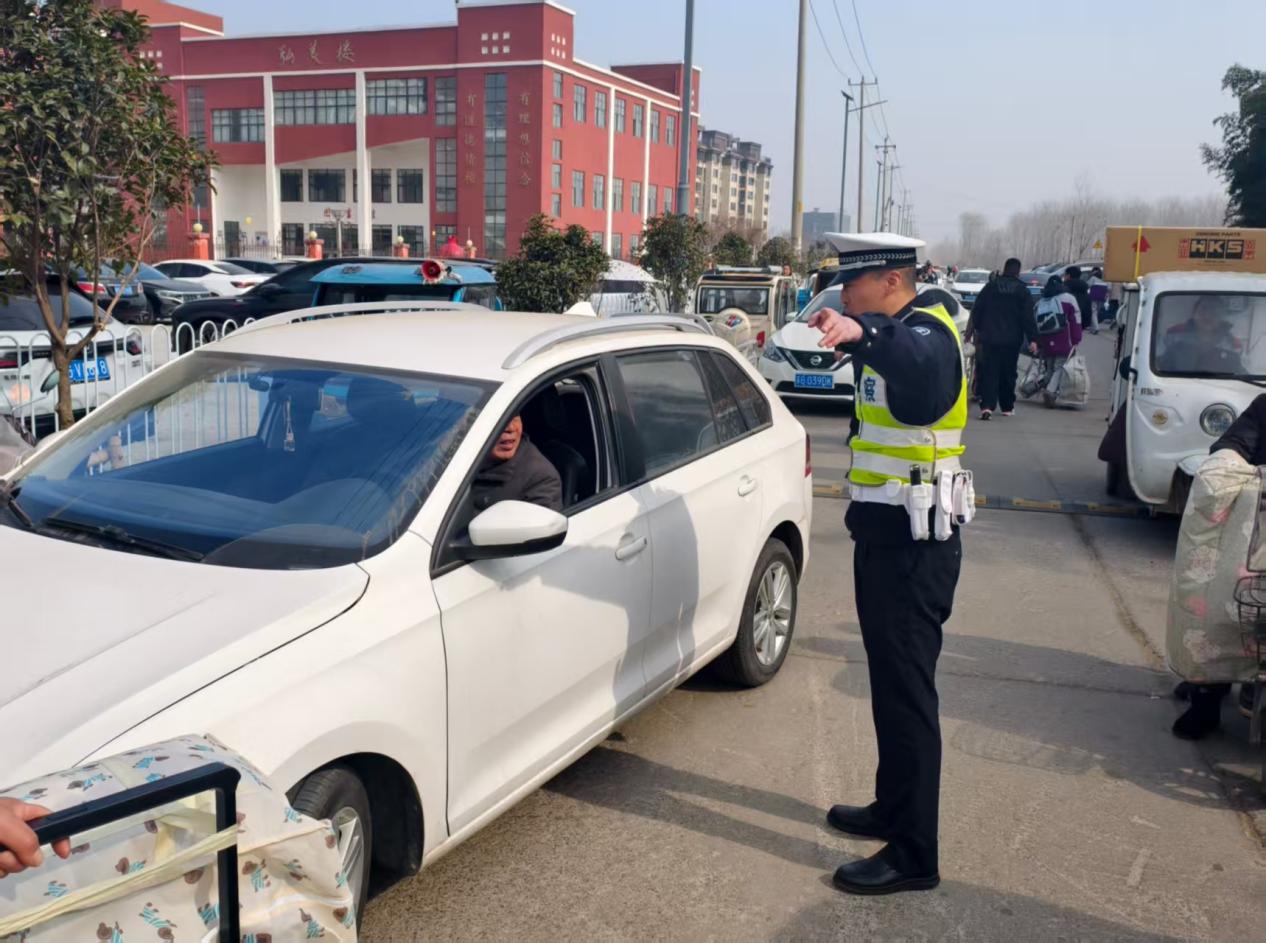 寒假前最后一个上学日,东海县公安局温泉中队在辖区各学校路段增派警力,加强交通疏导和秩序维护。2月6日早晨和中午,执勤民警早早来到学校周边路口,指挥车辆有序通行,引导学生安全过马路,确保校园周边交通秩序井然。
