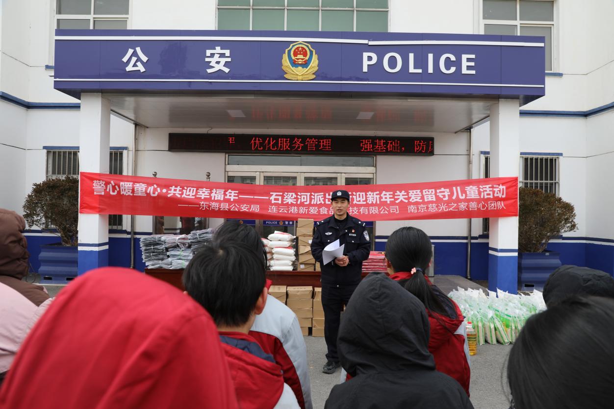 中国江苏网2月9日连云港讯 腊月迎新春,警心暖童心。2月6日上午,东海县公安局石梁河派出所联合连云港新爱食品科技有限公司、南京慈光之家善心团,共同开展“警心暖童心 共迎幸福年”主题关爱活动,为辖区内70余名留守儿童送去了冬日的温暖与新年的祝福。