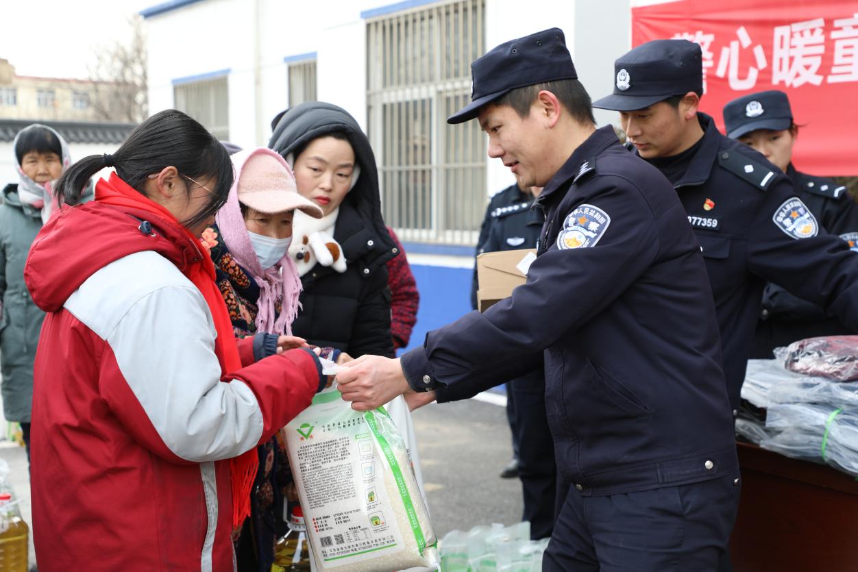 活动现场暖意融融,派出所民警和志愿者们将精心准备的书包、棉衣、米面等爱心物资逐一分发到孩子们手中。民警辅警蹲下身子,细心为孩子们试穿棉衣、系上围巾,仔细询问他们的学习生活情况。围绕寒假期间的安全问题,民警通过生动案例和互动问答,重点讲解了交通安全、用火用电安全、网络安全等知识,特别提醒孩子们要注意防范网络游戏诈骗、网络交友陷阱等新型风险,提升自我保护能力。